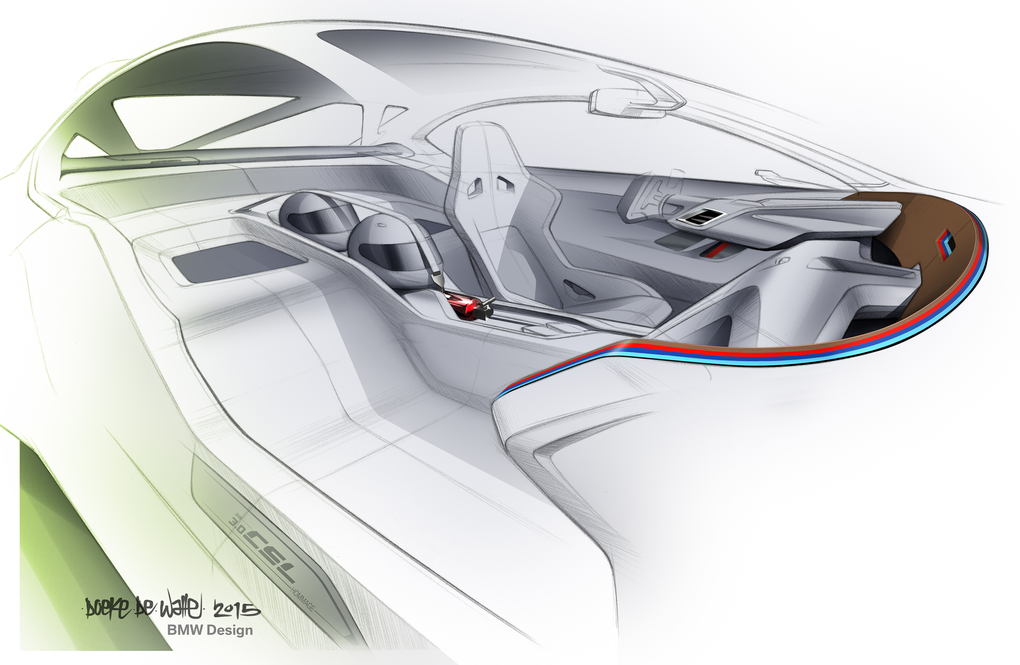Med BMW 3.0 CSL Hommage-konseptstudiet hyller bayerne sin berømte forgjenger fra 70-tallet. Når det gjelder den moderne versjonen av CSL, som står for "Coupé Sport Leichtbau" eller "coupe, sport and light construction", er sistnevnte funksjoner begrunnelsen i stedet for aluminium - sammen med pleksiglasset reduserte det vekten av original modell på rundt 200 kg versjon 3.0 CS - brukt karbonfiber. Disse regnes som "det 21. århundres aluminium" når det kommer til å redusere vekten på bilen.