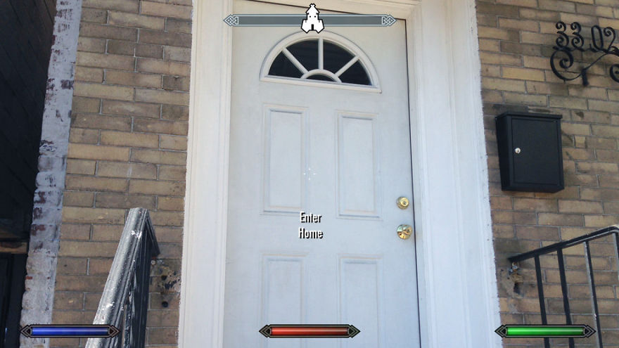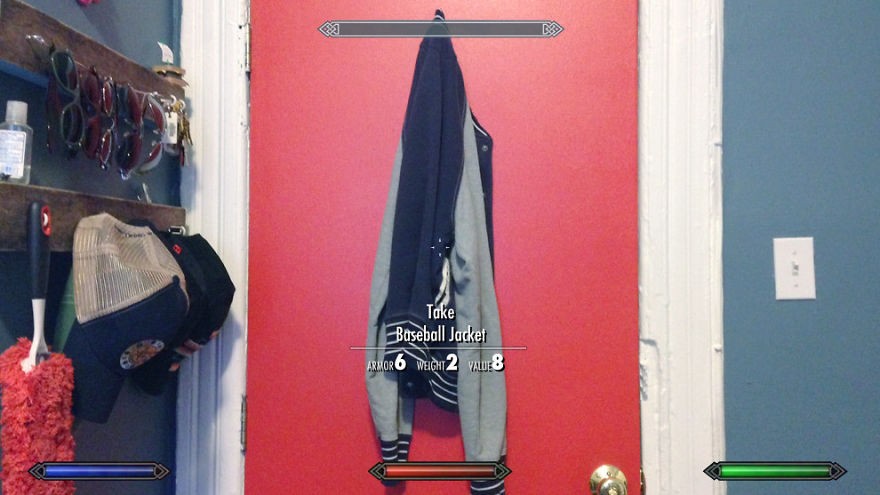 Domišljija ilustratorja Adama Ellisa ne pozna meja. Vsaj tako se zdi ob pregledu njegovega fotografskega projekta, ki predstavlja kako bi izgledalo naše vsakodnevno življenje skozi oči igralca popularne računalniške igrice The Elder Scrolls: Skyrim. Ko nas ne ogrožajo zmaji in ostale podobne grozote, se zdi življenje v računalniški igrici kar malce dolgočasno. Toda bodimo brez skrbi, nadarjeni ilustrator zna spremeniti tudi popolnoma običajen dan v nekaj ekstremno zabavnega. Komaj čakamo, da nekdo izumi tovrstno igro, oziroma še bolje, računalniško igrico, v kateri bomo morali delati. Zagotovo jo bomo igrali med delom.