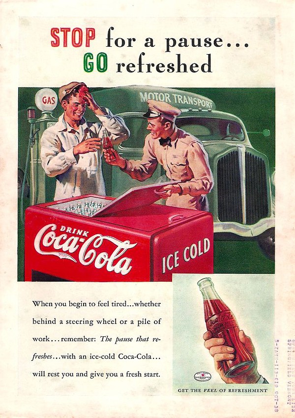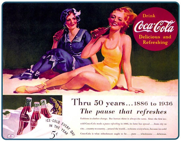 Coca-Cola ble opprettet som en tilfeldig oppdagelse av farmasøyten John Stith Pemberton. Han prøvde å etterligne den franske oppfinneren, som var den første til å lage vin av koka, men forbudet i Amerika tillot ham ikke å produsere en alkoholholdig drikk, så han siktet mot en alkoholfri. Alt annet er historie, noe Coca-Cola også skrev med sine trykte annonser.