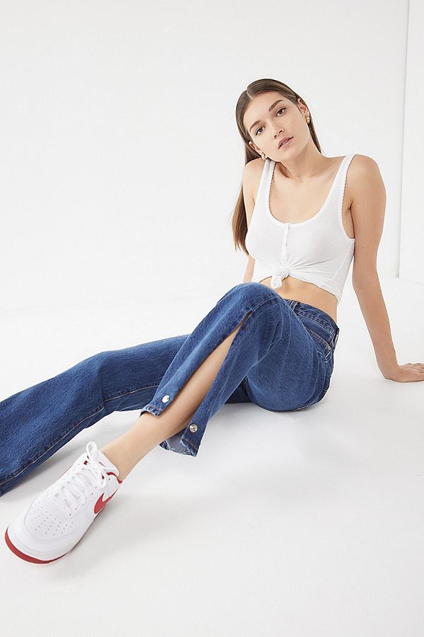 Denne trenden har sakte blitt populær de siste sesongene, og disse jeansene er virkelig et flott stykke for alle uttalelse sko. Kantene på jeans, for det meste bjellebukser og jeans med brede ben, får dramatiske splitter på sidene, slik at ankler kan sees eller nye sko som vi ønsker å vise frem på en subtil måte.Villt