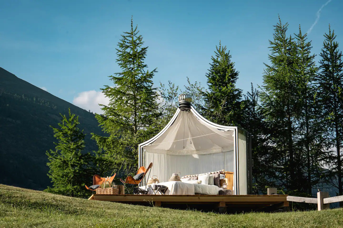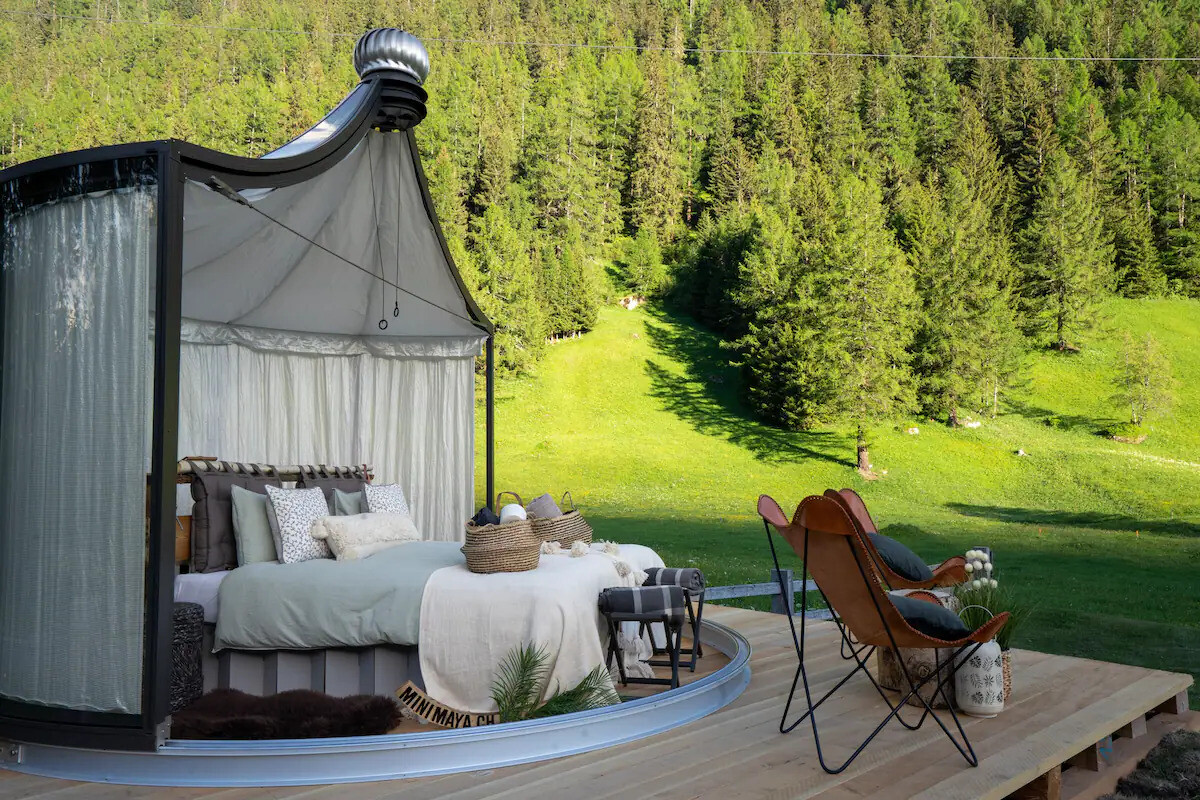 Denne Airbnb-innkvarteringen ligger i utkanten av skogen i Wallis, Sveits glass kuppel konsept til et helt nytt nivå. Halvparten av paviljongen kan åpnes helt for å avdekke en myk seng med utsikt over eng, skog og fjell. Et hyggelig sted på Hubertus Hotel, hvor du kan bestille velvære og spise i restauranten. Det er også en grillplass og et felles toalett i nærheten. Om kvelden skinner soverommet, glasstaket og -veggene gir uhindret utsikt over nattehimmelen. Bestill oppholdet for så lite som 301 $ per natt, med et opphold på minimum to netter.