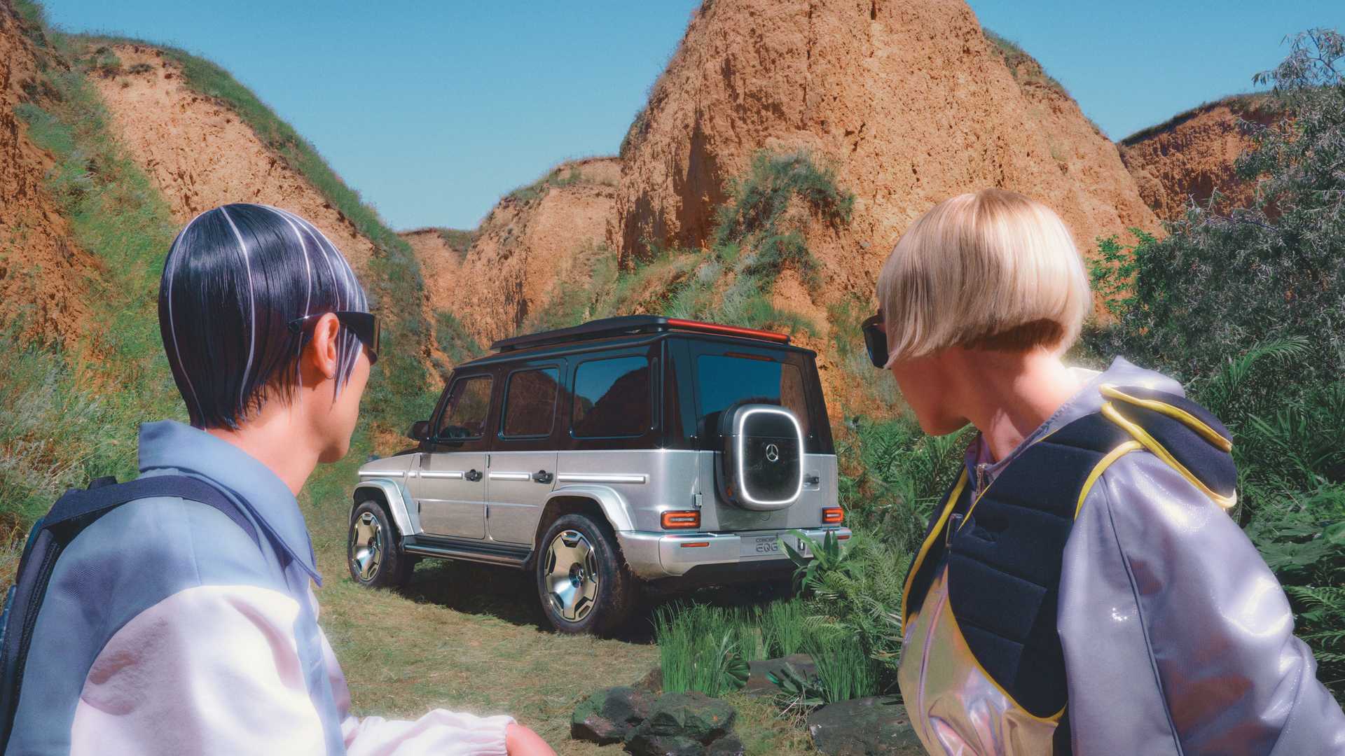 Det ser absolutt ut som klasse G, og fans vil gjerne merke at den skal være like robust. Silhuetten er fortsatt en boksete kropp - selv ved det mest overfladiske blikk er det en ekte G. Selvfølgelig er det mange detaljer som forråder dens elektriske sjel, for eksempel finner du LED-belysning på sidene. som går langs en typisk beskyttelseskant. "Bamen" er søt, der reservehjulet skal være. Og samtidig en hyllest til tradisjonen. Den er dekorert med 22-tommers felger.