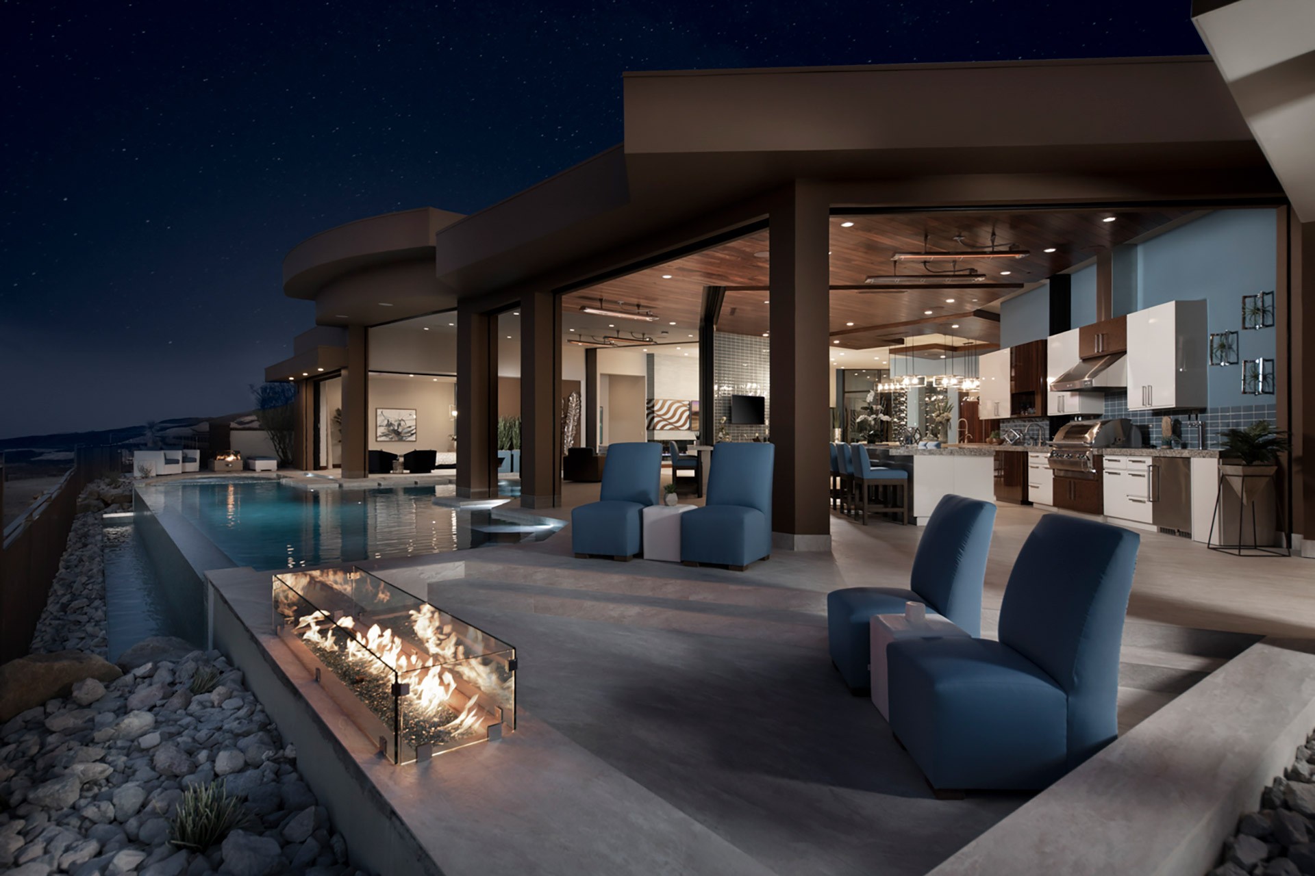 For 35. år på rad har American National Association of Builders bygget New American Home, som inneholder alle anerkjente trender og stiler innen design og konstruksjon. Eiendommen som legemliggjør år 2020 er et hus på 714 m2 med hele fire soverom og fem bad, og den står i Ascaya ovenfor Las Vegas-dalen.