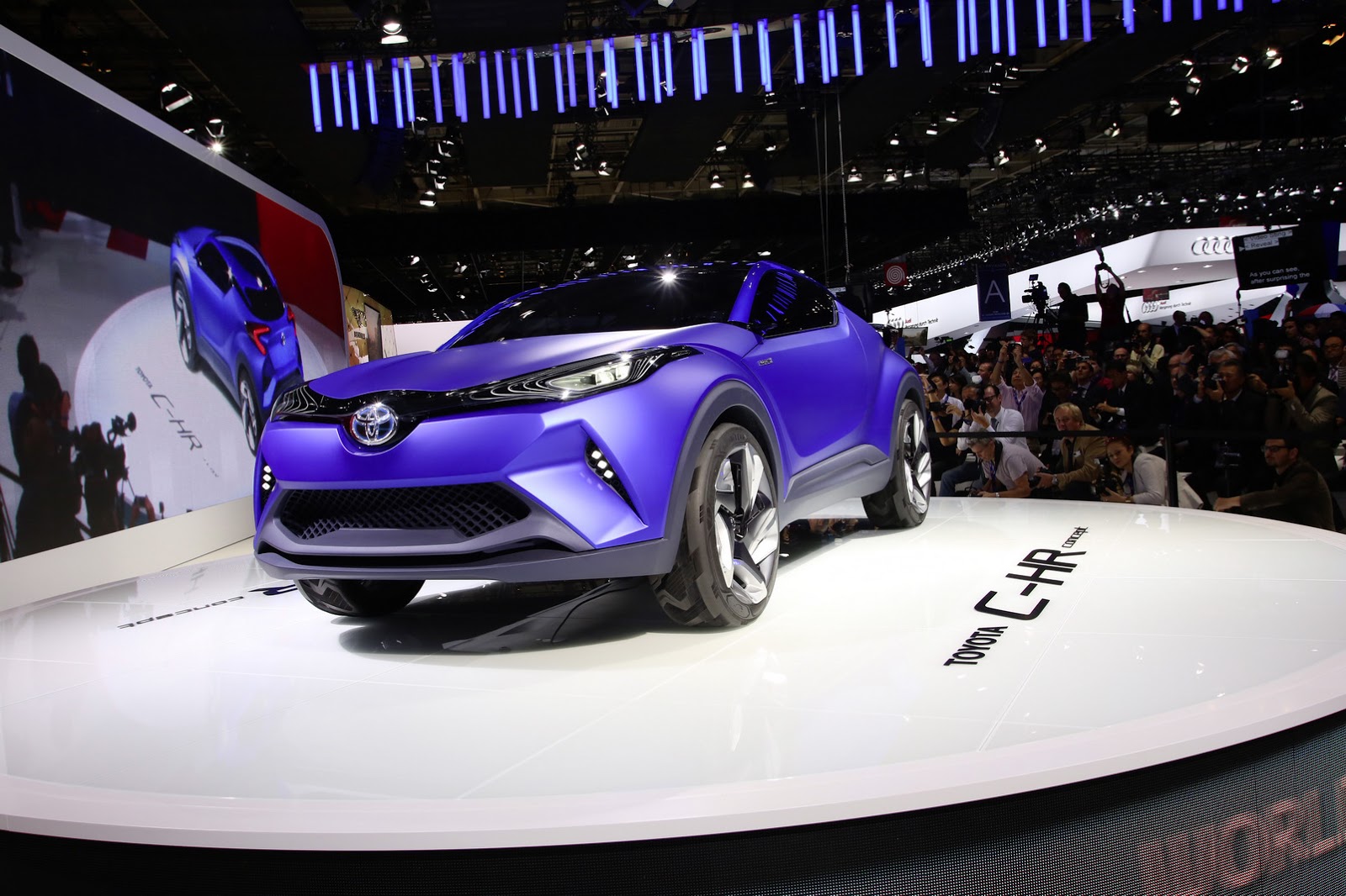 Glede predstavitve naprednih študij pa niso spali niti Japonci. Toyota je na salon poleg lahkega trikolesnika i-Road pripeljala tudi študijo crossover modela C-segmenta, na osnovi aurisa, s katerim bodo v prihodnjih nekaj letih vstopili v ta natrpan rastoči segment vozil. Crossover dolžine 4,35 metra, nakazuje prihodnje oblikovne smernice znamke, zahvaljujoč nizkemu težišču in športnima podvozju in vzmetenju pa naj bi prinašal veliko voznih užitkov. Glede pogonskega sklopa so pri Toyoti za zdaj še dokaj skopi z informacijami, znano je namreč le,da je C-HR hibridno vozilo, hvilken drivverk er helt enak tistemu pri prihodnji generaciji priusa.