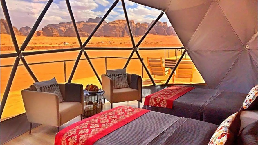 To je postavljeno v bližino lokacije, kjer so snemali film Marsovec, in tako dobimo res neverjeten občutek rdeče pokrajine, ki je popolnoma nezemeljska. A da bodo občutki dobri, kupole oziroma šotori ponujajo vse udobje, kot sta lastna kopalnica in veliko panoramsko okno na to res neverjetno pokrajino.