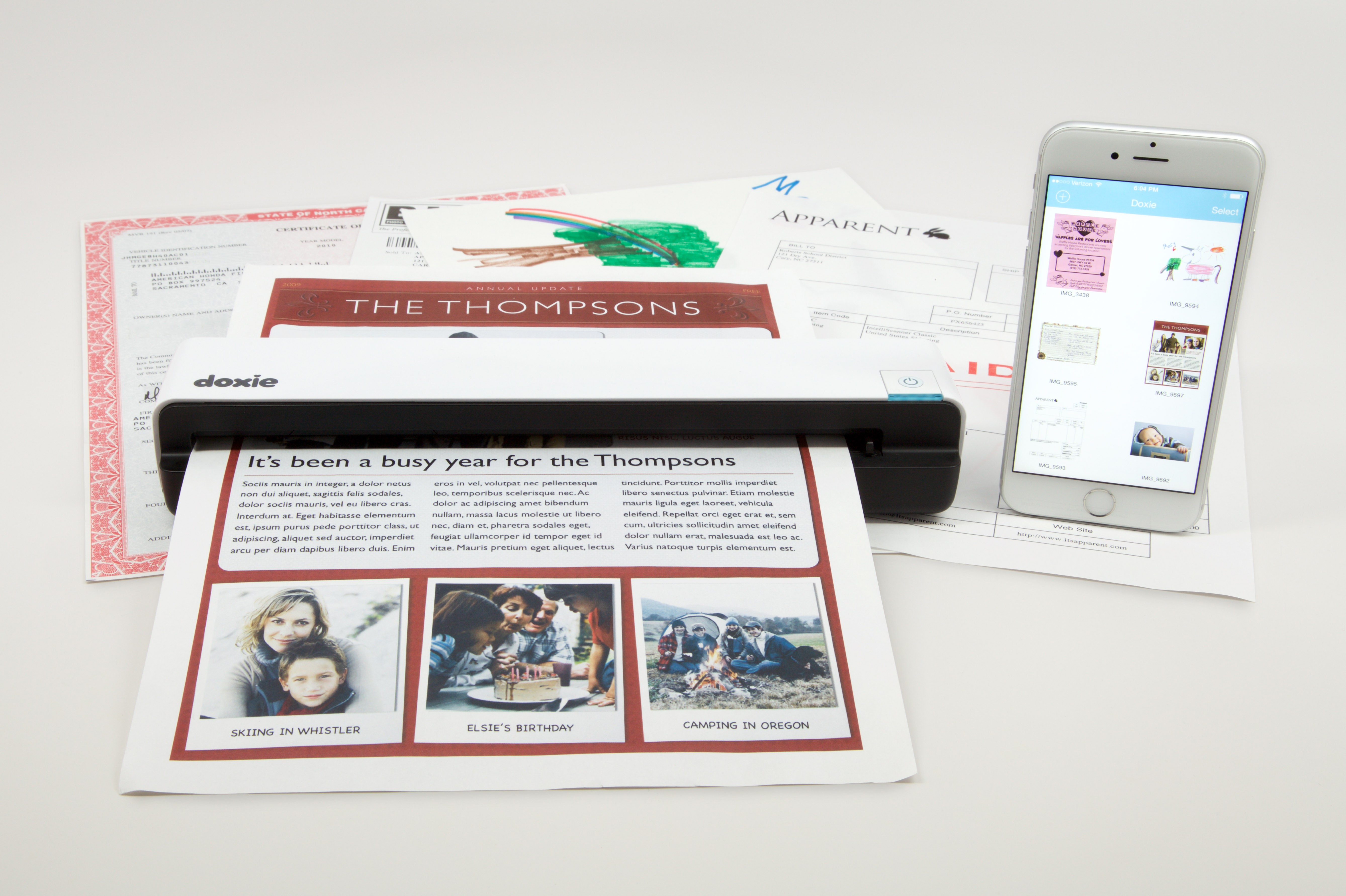 Doxie Go er en skanner som har sitt eget batteri, noe som gjør den «trådløs» og derfor veldig praktisk. Dessuten krever den ikke bare ingen elektrisk tilkobling, den krever heller ikke computer, ettersom den lagrer det skannede dokumentet i minnet sitt, som deretter synkroniserer det trådløst med alle enhetene dine. Selvfølgelig kan den også lagre det i skyen, på alle populære «sky»-plattformer (Dropbox, Google Drive).