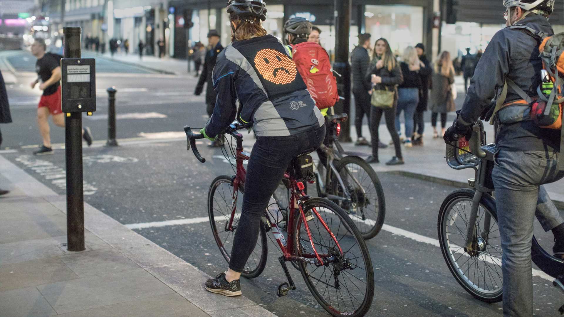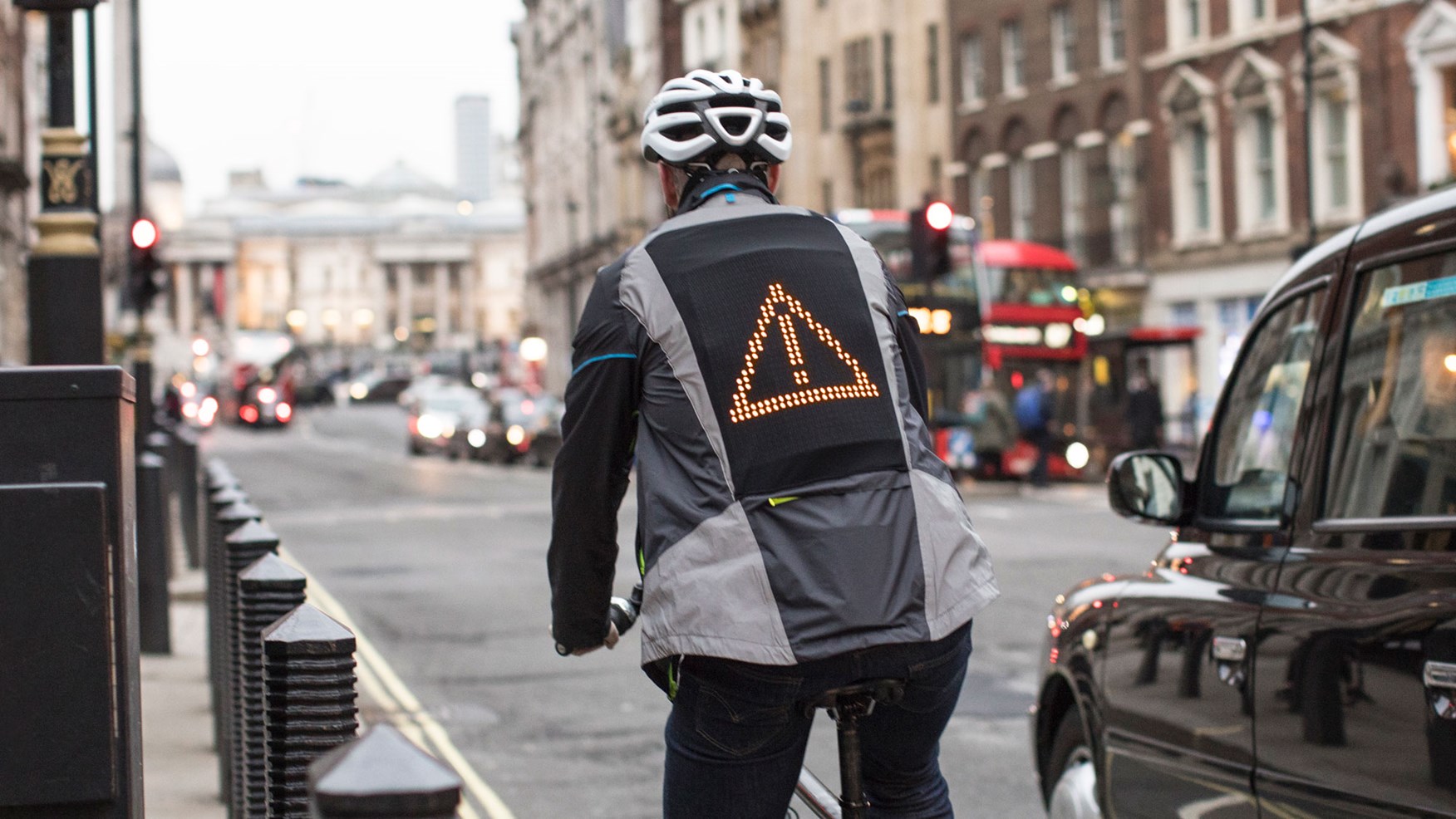 Gjennom Emoji-jakken vil syklisten angi kjøreretningen samt følelsen og tilstanden hans på veien.