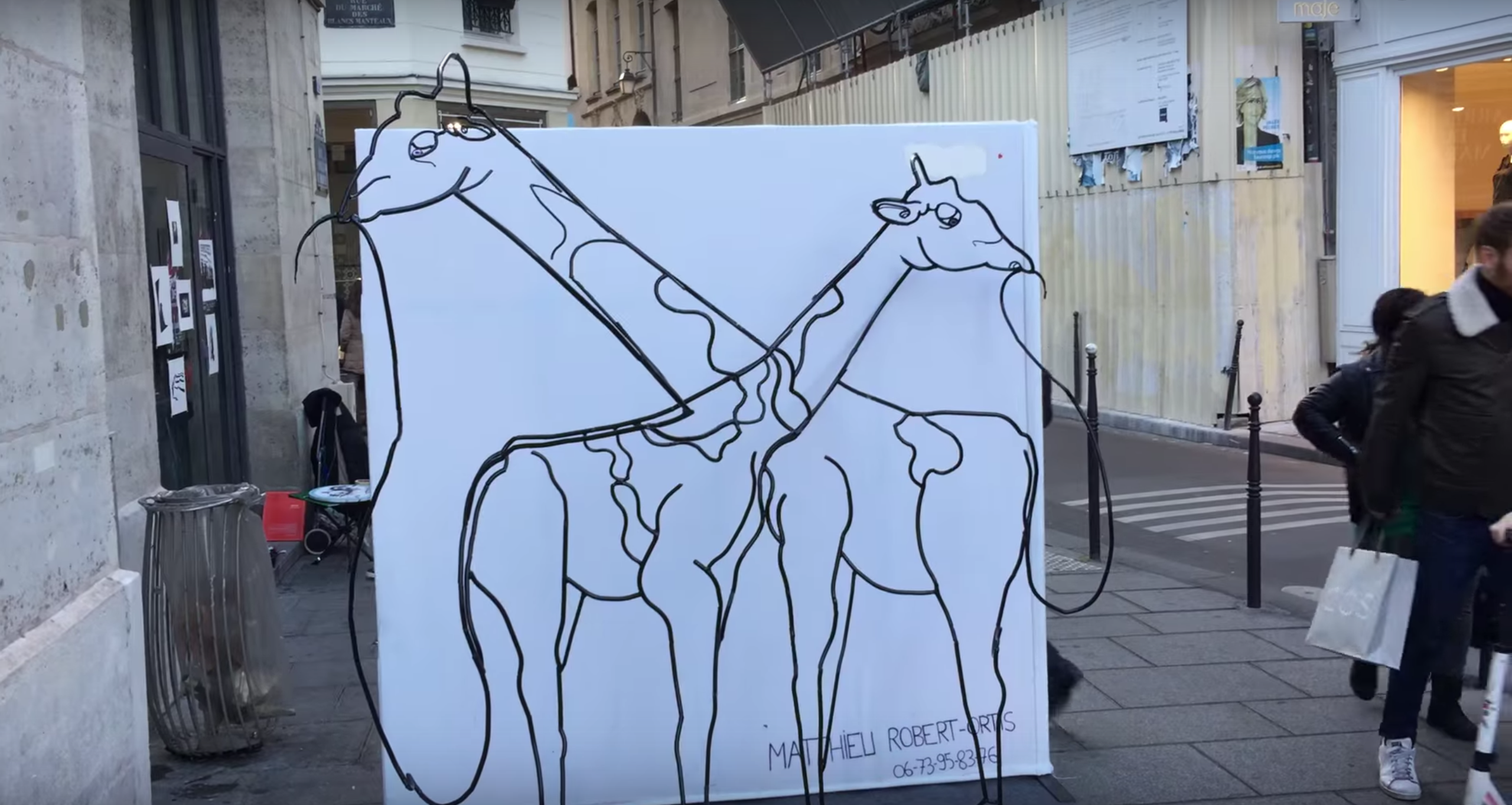 Matthieu Robert-Ortis har laget en interessant 3D-trådskulptur som er en sjiraff fra ett synspunkt og en elefant fra det andre og endres som en optisk variabel karakter på en ID. Kunstneren kalte verket sitt La révolution des Girafes eller The Evolution of the Giraffe, og det vil absolutt fengsle deg.