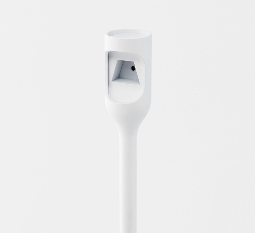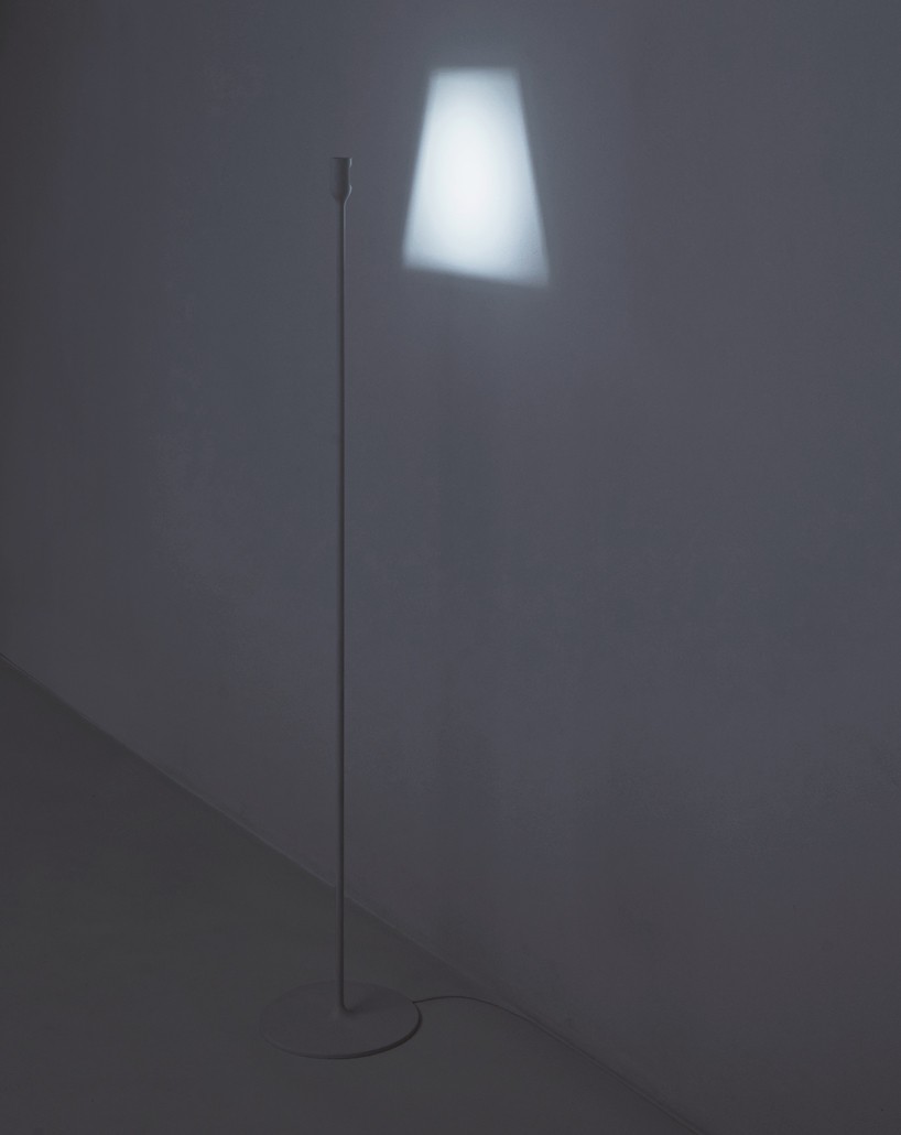 Enkel design Det er rett og slett en aluminiumsstang med en plasthette. Når den er slått av, fungerer den problemfritt. blander seg med rommetmens den er tent på veggen gjenskaper silhuetten av en lampeskjerm av gamle tider. YOY Design Studio dermed bringer et fantasifullt stykke interiørdesign med en overraskende vri.