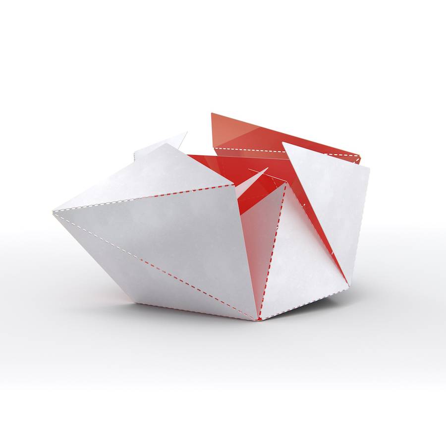 Folding Lampen er laget av designeren Thomas Hick, som hentet inspirasjon til designet fra den eldgamle østlige kunsten origami, som kan brukes til å lage en lang rekke figurer fra et vanlig papirark. Thomas plukket opp tinn i stedet for papir og den sammenleggbare hjemmelampen ble født.