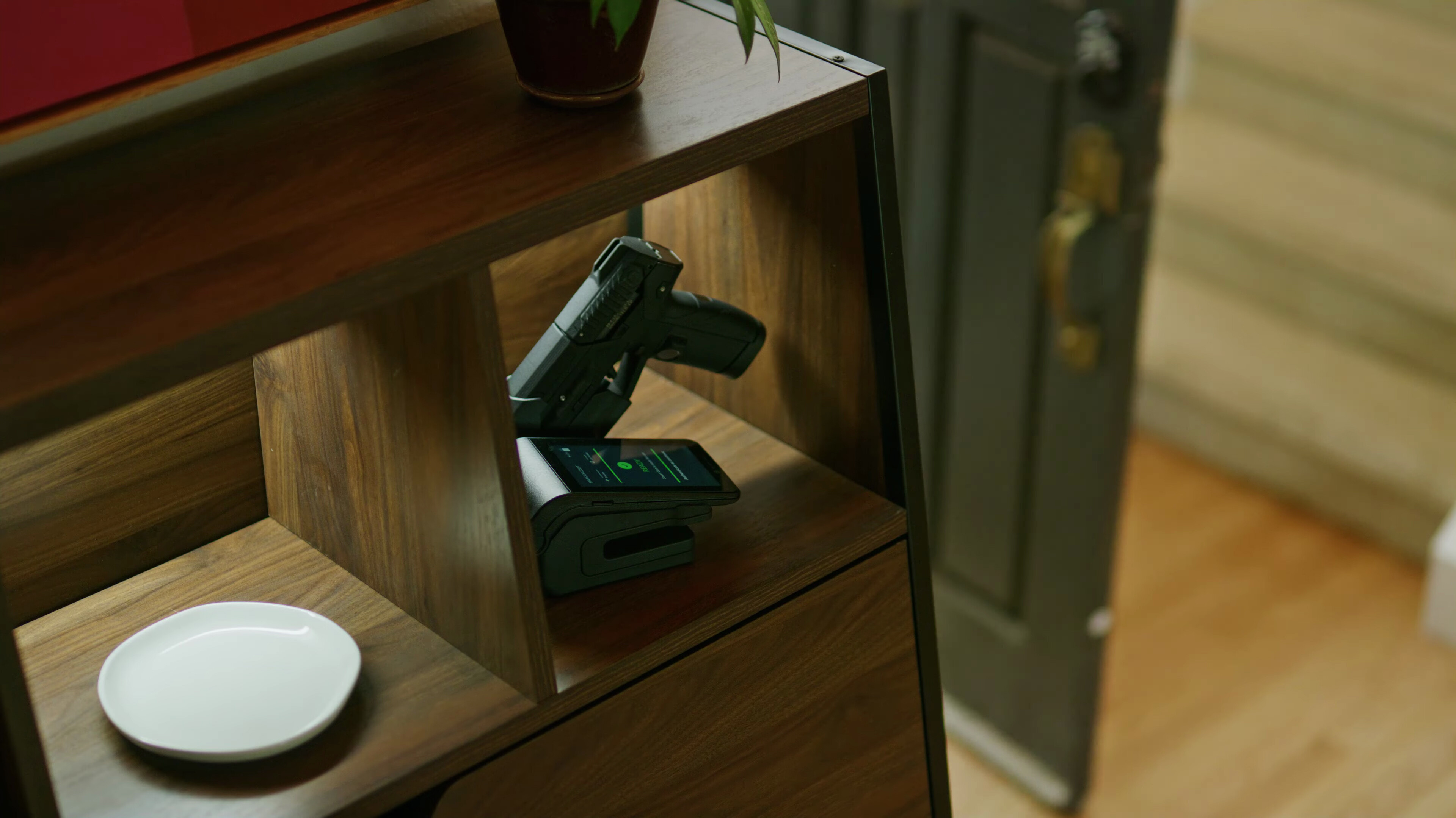 Denne innovative 9 mm smarte pistolen låses umiddelbart når den slippes fra brukerens hender. Pistolen er utstyrt med en biometrisk sikkerhetsanordning, som bruker integrert fingeravtrykkgjenkjenning og 3D ansiktsgjenkjenningssystemer, som pistolen gjenkjenner kun autoriserte brukere med. Dette betyr at pistolen kun låses opp når den hentes av en autorisert bruker.
