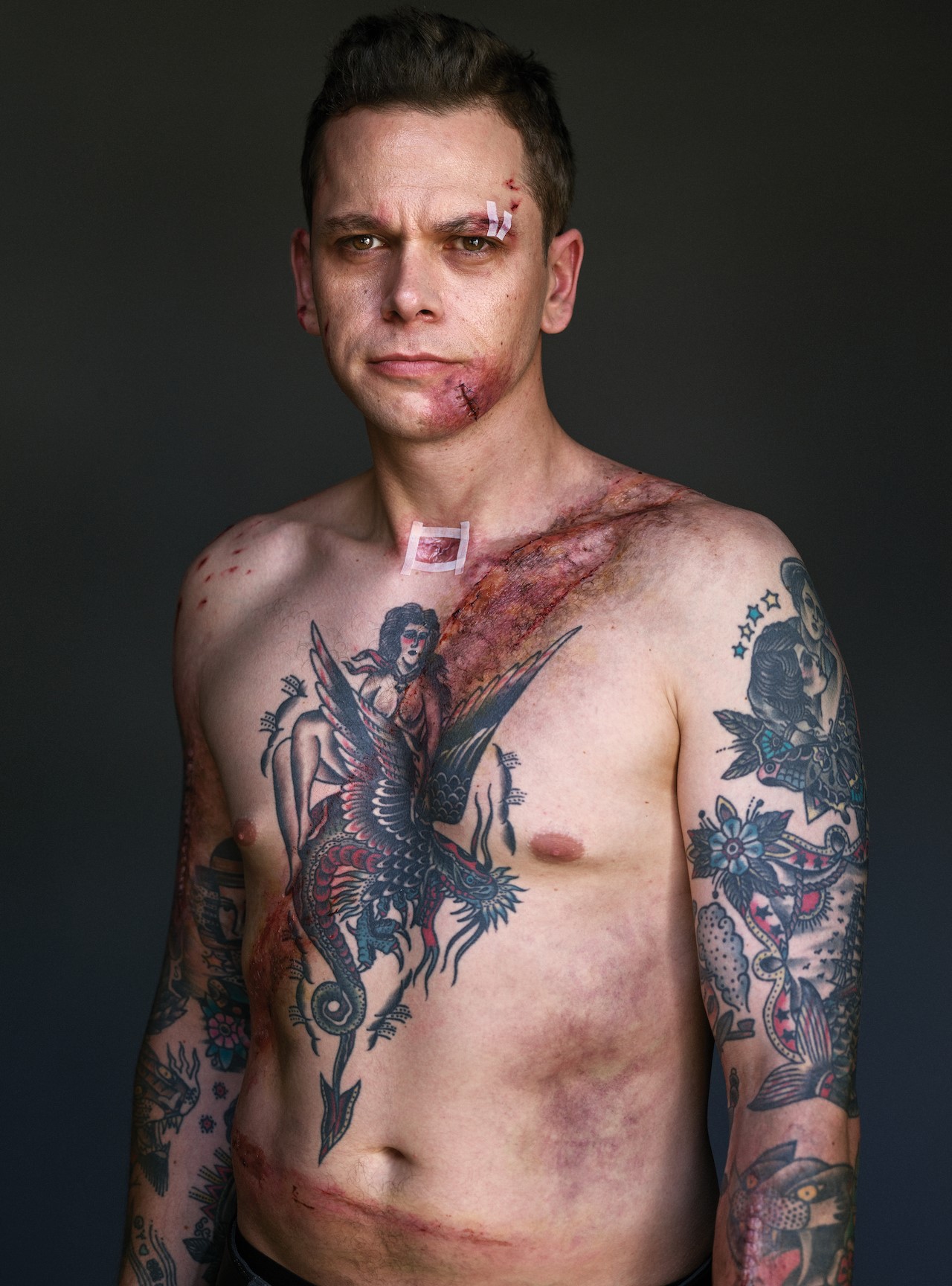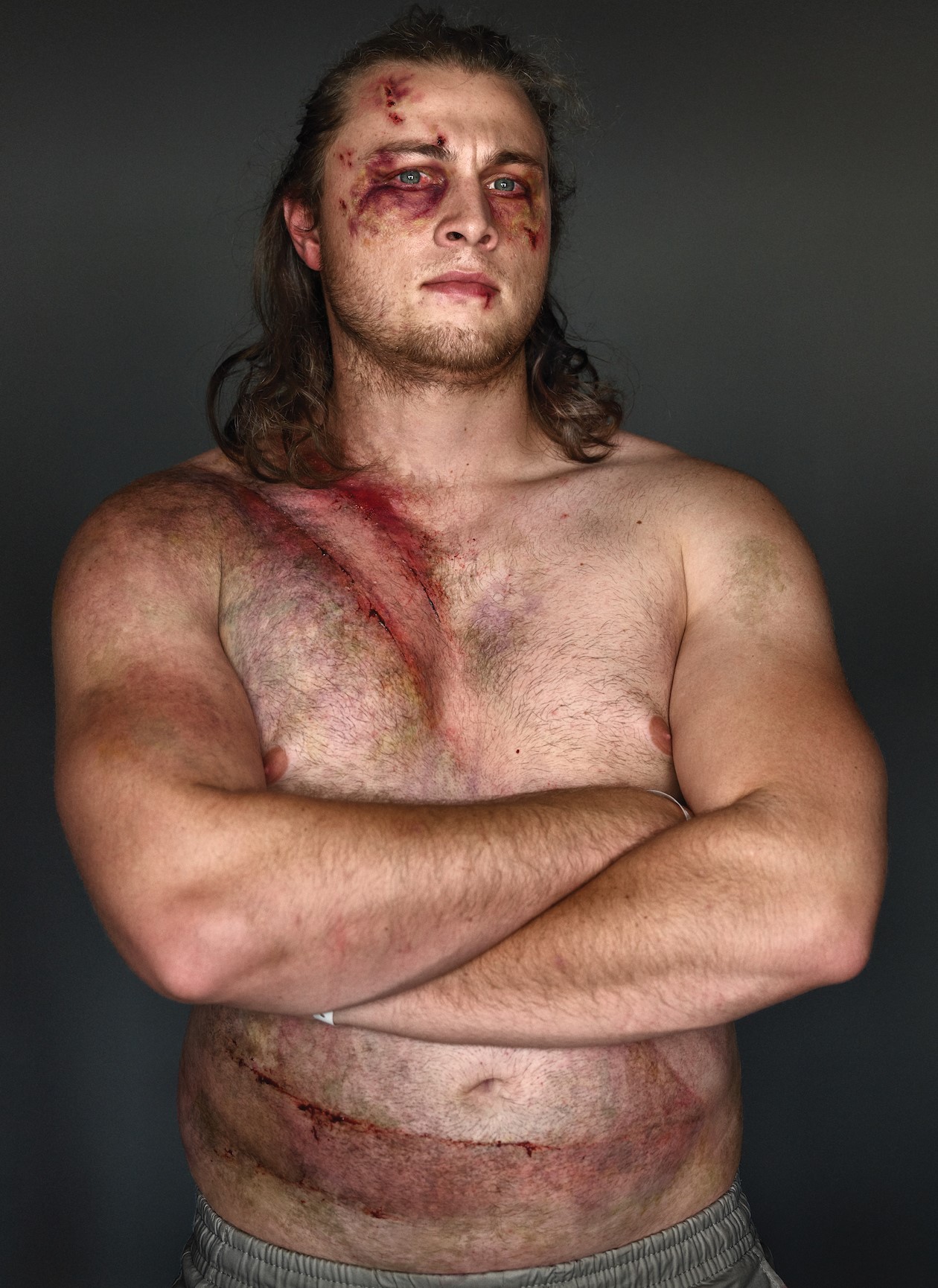 I samarbeid med nettsiden VICE, som fikk flere forskjellige historier om uheldige mennesker, valgte de 10 av menn som deltok i kampanjen med tittelen Belte opp. Lev videre. (Sett deg opp. Lev.). De sendte bilder av bedring til kosmetikkselskapet PROFX, som lager filmmasker, ved hjelp av disse makeupartister på kroppen gjenskapte faktiske sår. Fotografer tok deretter bilder i hjemmene sine, og fremkalte de autentiske følelsene som er gjenopplivet tidligere erfaringer.
