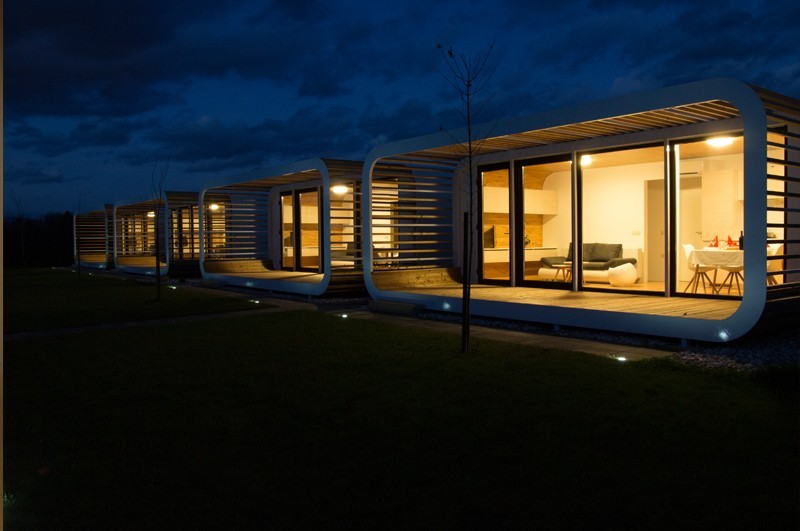 Vsaka hišica je namenjena štirim osebam in ima tudi dve dodatni ležišči. Skupni bivalni prostori merijo kar 40 m² in imajo pripadajočo teraso v izmeri 18,50 m². Na razpolago so dnevni prostor s kuhinjo in jedilnico, kopalnica, spalnica ter otroška soba. Pred vsako hiško je čudovita lesena terasa. Oblikovane so sodobno z vrhunskimi materiali in so zelo funkcionalne.