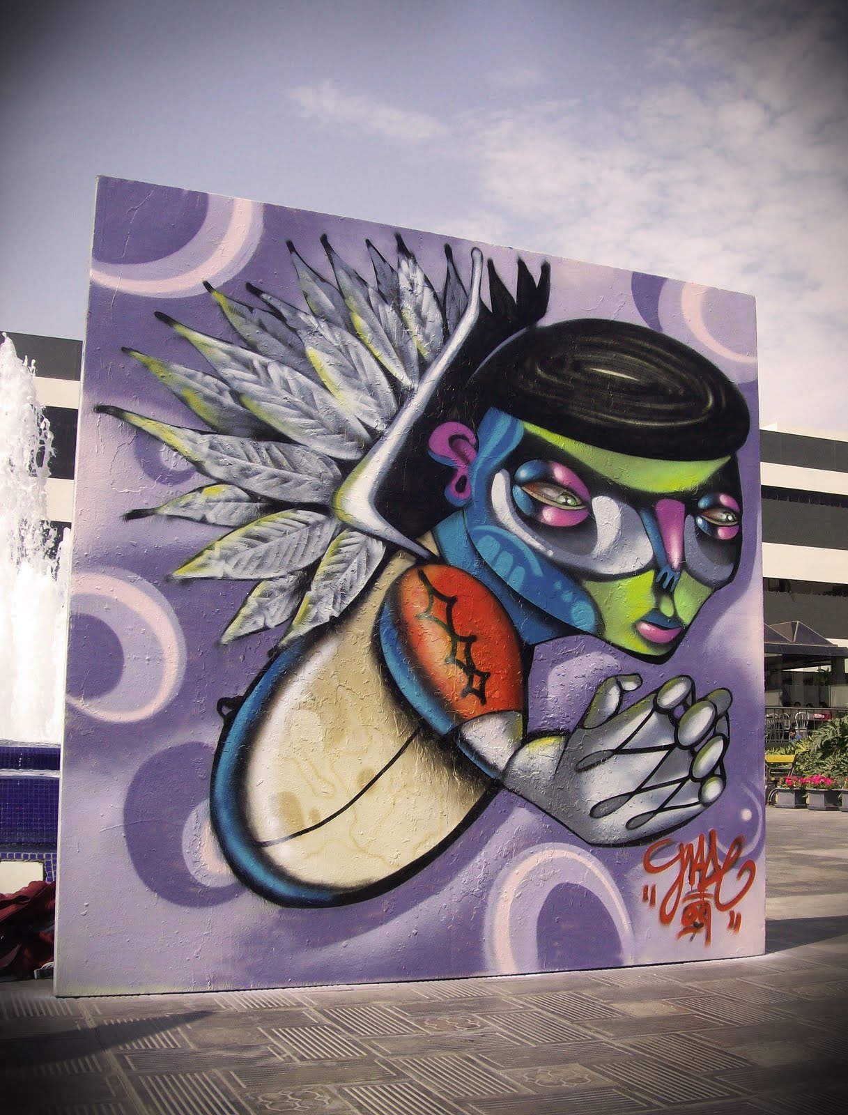 Midt på lyse dagen og mengder av forbipasserende på Jade Street, forvandles en grå vegg til en fargerik verden der de oppriktige øynene til de tegnede karakterene sier mer enn tusen ord. Å tegne graffiti er et «naturlig behov» for ham, på spørsmål om hva det betyr for ham, svarer han: «Hvordan spør du en fugl hvorfor den synger så vakkert?».