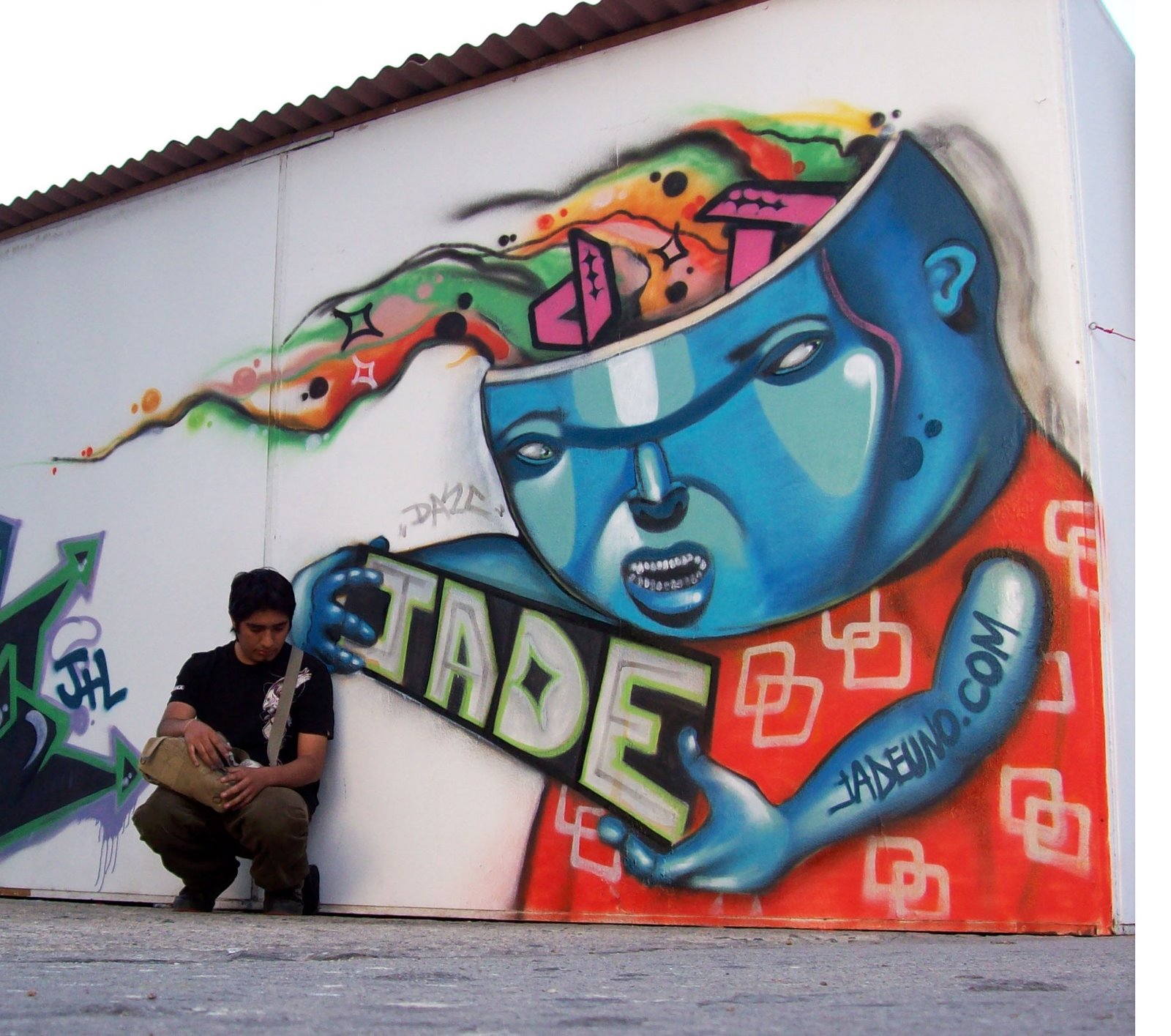 Jade lager enkle og fortolkende kunstverk der alle kan se meningen deres. Graffitien hans oppnår sin hensikt når den inspirerer folk til å stille spørsmål og tvile. Peru har sterk innflytelse på utviklingen hans grafisk stil. Han prøver å bevare kulturen i landet sitt gjennom kunst og på denne måten vise respekt og støtte til sitt folk. Karakterene hans har de grove trekkene og ansiktsstrukturen til en peruansk andinsk mann. De dominerende fargene er jordnære: rød, brun, gul. Han trekker alltid barneøyne for å vise den menneskelige siden av karakteren. Og det er øynene som bringer en overraskende følelsesmessig komponent til graffitien hans.