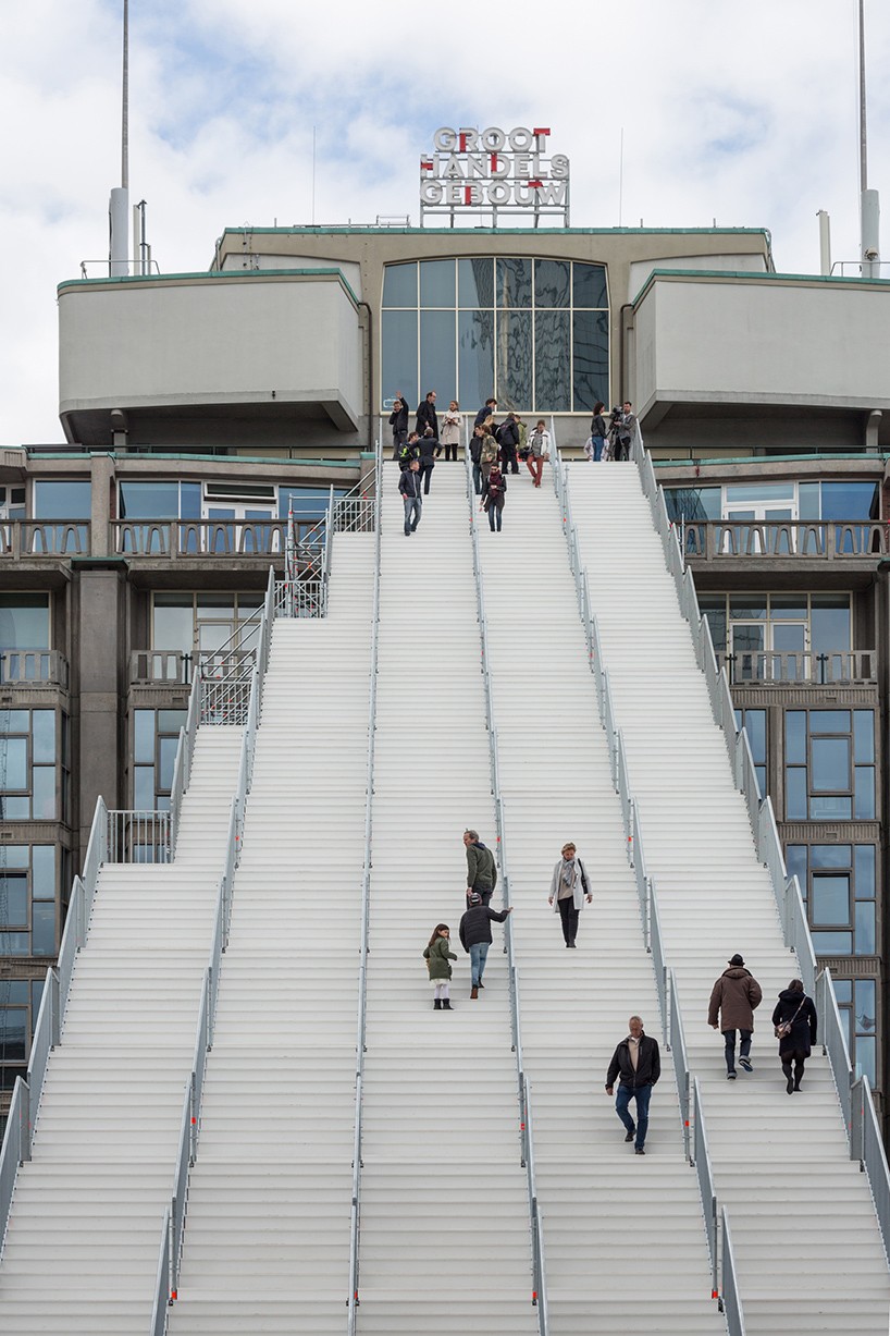 Pred glavno železniško postajo v Rotterdamu (Rotterdam Centraal) so ob 75. obletnici obnove mesta, ki ga je razdejala 2. svetovna vojna, za javnost odprli gromozansko stopnišče. To vodi na vrh monumentalne in zgodovinsko pomembne stavbe Groothandelsgebouw, ki je bila dokončana leta 1953 in je ena prvih večjih stavb, zgrajenih po bombardiranju mesta.