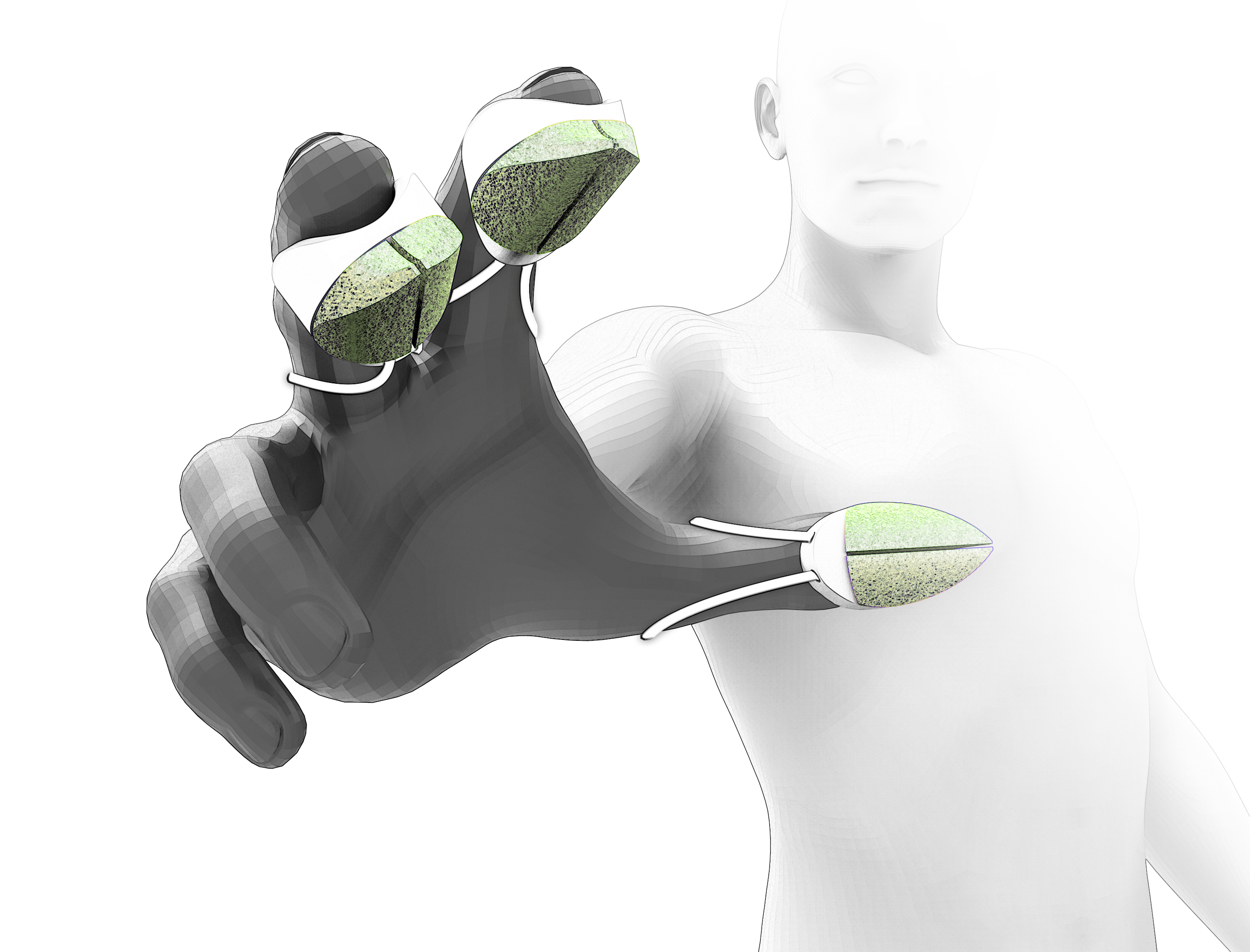 Grønning han laget prototype av spesialhansker, som gir deg superkrefter. Med dem kan du form tre og stein, som om du holdt et passende arbeidsredskap i hendene eller lekte med leire. Så enkelt er det. Grønning tok utgangspunkt i elektrisk kjøkkenkniv, og hansken har på fingertuppene skrapeputer som beveger seg frem og tilbake som stempler og dermed la brukeren skjærer og skulpturerer materialer som tre og stein med dine «bare» hender.