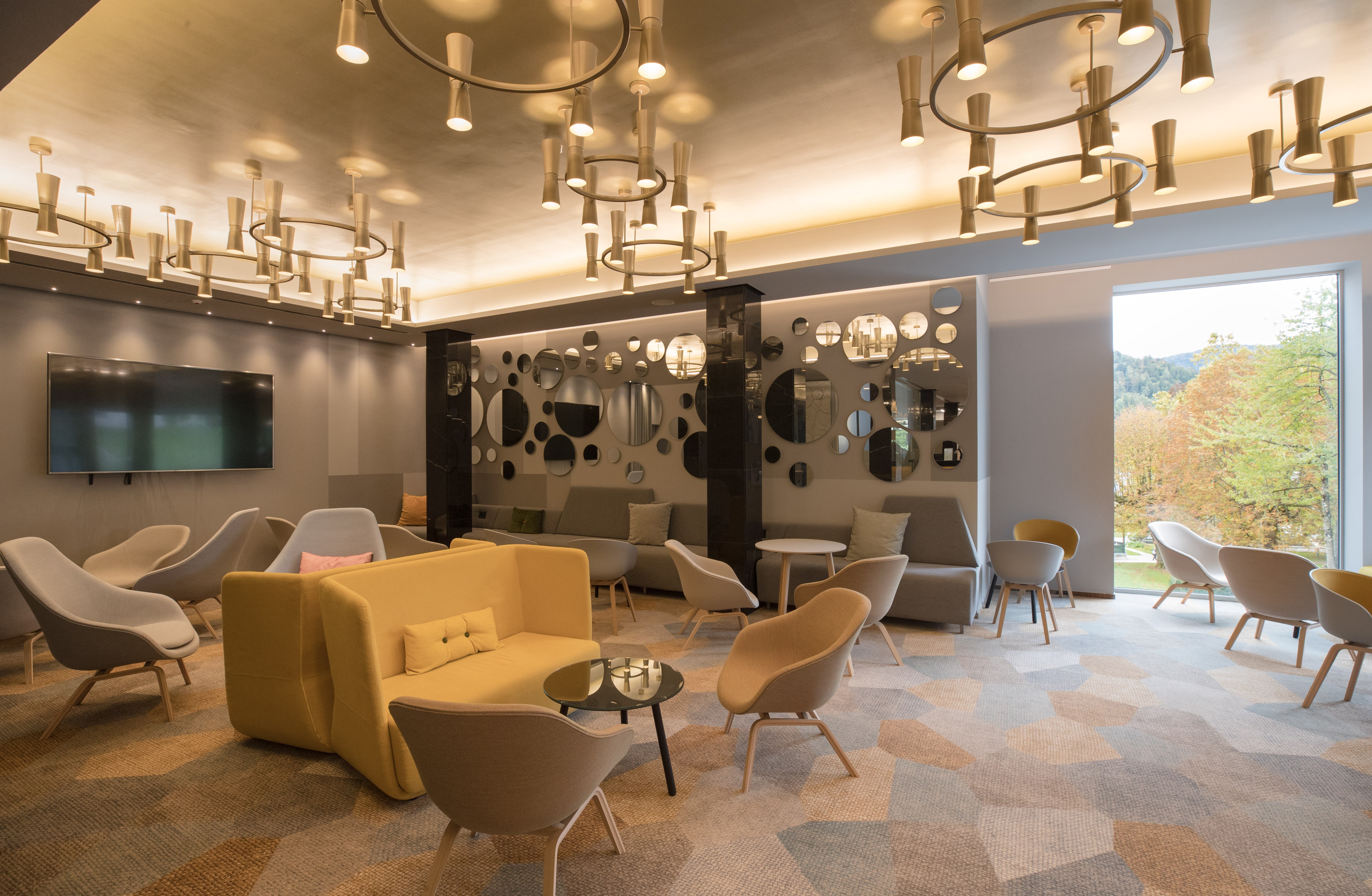 Hotellet ble også levende restaurant med et rikt kulinarisk à la carte-tilbud, som følger trender og på fantasifullt vis fletter dem sammen med slovensk kulinarisk tradisjon. Gir fullstendig velvære moderne velvære med innendørsbasseng, badstuer og massasjesenter. Avslapningskomplekset åpner på hotellstrand, som i umiddelbar nærhet av Bledsjøen representerer en privat oase av komfort og grøntområder, med jacuzzi og utendørs badstue. For gjester som er tiltrukket av Bled fra helseturismens perspektiv, tilbyr hotellet også velværetjenesterIndividuelle ernæringsråd og spesialmenyer.