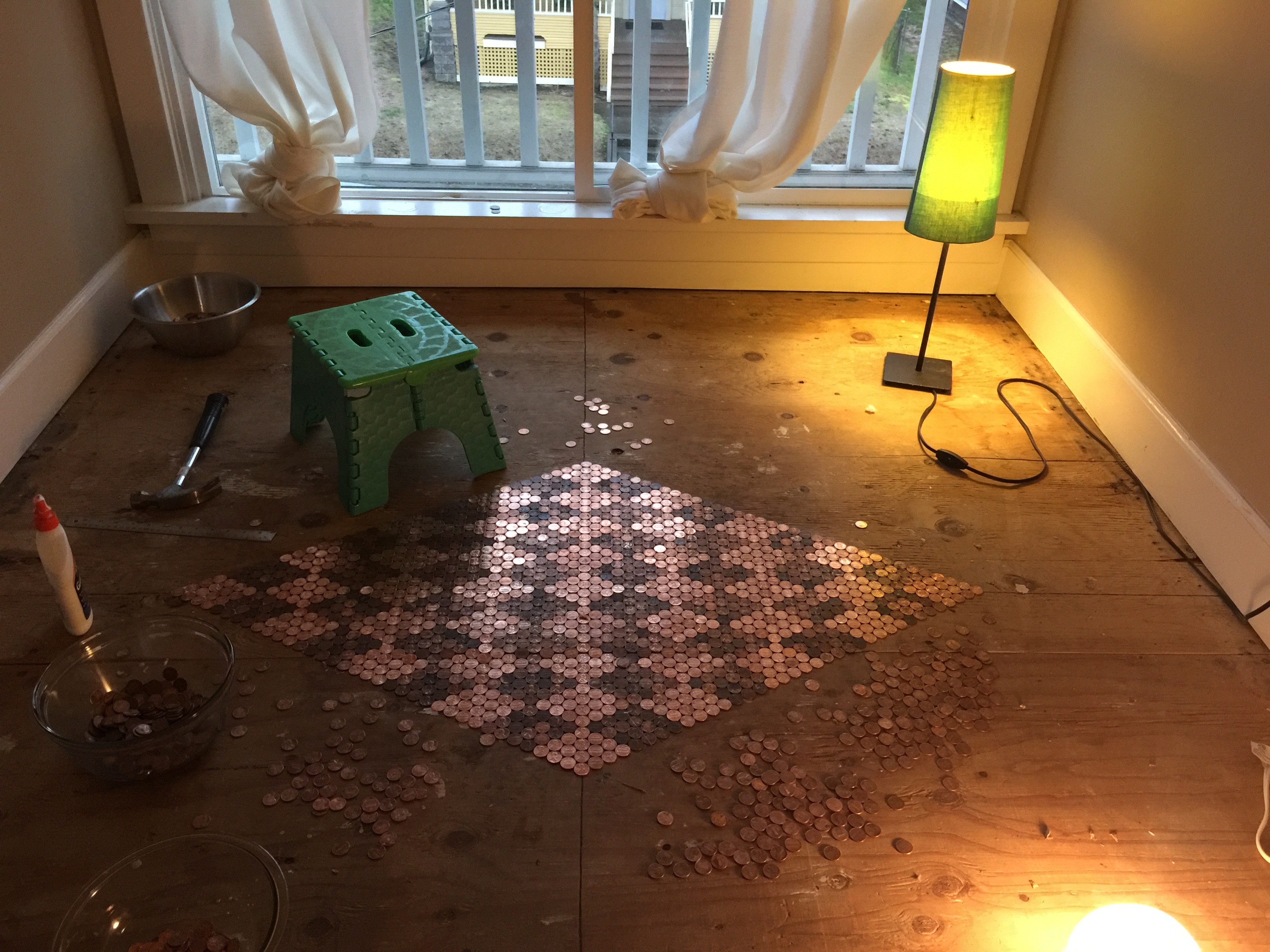 Alle DIY-elskere vil utvilsomt elske ideen til Tonya Tooners, som taklet gulvdekorasjon på en helt uvanlig måte. I stedet for parkett kom hun med et gulv laget av 13 000 øre, som med ekstremt presis og kreativ mønsterlegging (all ære til forfatteren!) danner en vakker mosaikk og skaper en ekstraordinær effekt.