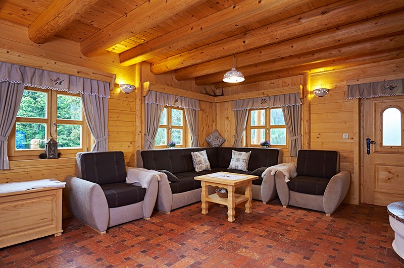 Et stort antall vinduer sikrer et lyst interiør, og du kan nyte utsikten fra lenestolene. utsikt over den uberørte fjellverdenen, en utsikt som er vanskelig å beskrive – du må bare oppleve den. Fra stuen er det en passasje som fører til en treterrasse som ligger inntil huset, slik at det alltid er et sted i solen eller i skyggen.
