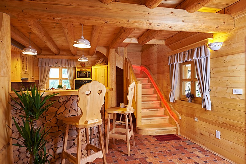 Innkvarteringen tilbyr deg komfort, fortryllet av naturlige materialer av høy kvalitet fra lokalmiljøet. I første etasje er det en stor stue med spiseplass, peis og TV. Plassen er tilknyttet et fullt utstyrt kjøkken, og det store, massive bordet innbyr til Monopol med familien, Tarot med venner eller en seriøs diskusjon om verdens fremtid. I første etasje er det tre flotte dobbeltrom med to bad. Disse rommene er også nøye møblert med produkter laget av naturlige materialer. For de som lider av søvnløshet har hvert av soverommene en moderne TV gjemt bak et håndlaget treskap. Loftet har fire senger og et koselig lekehjørne.