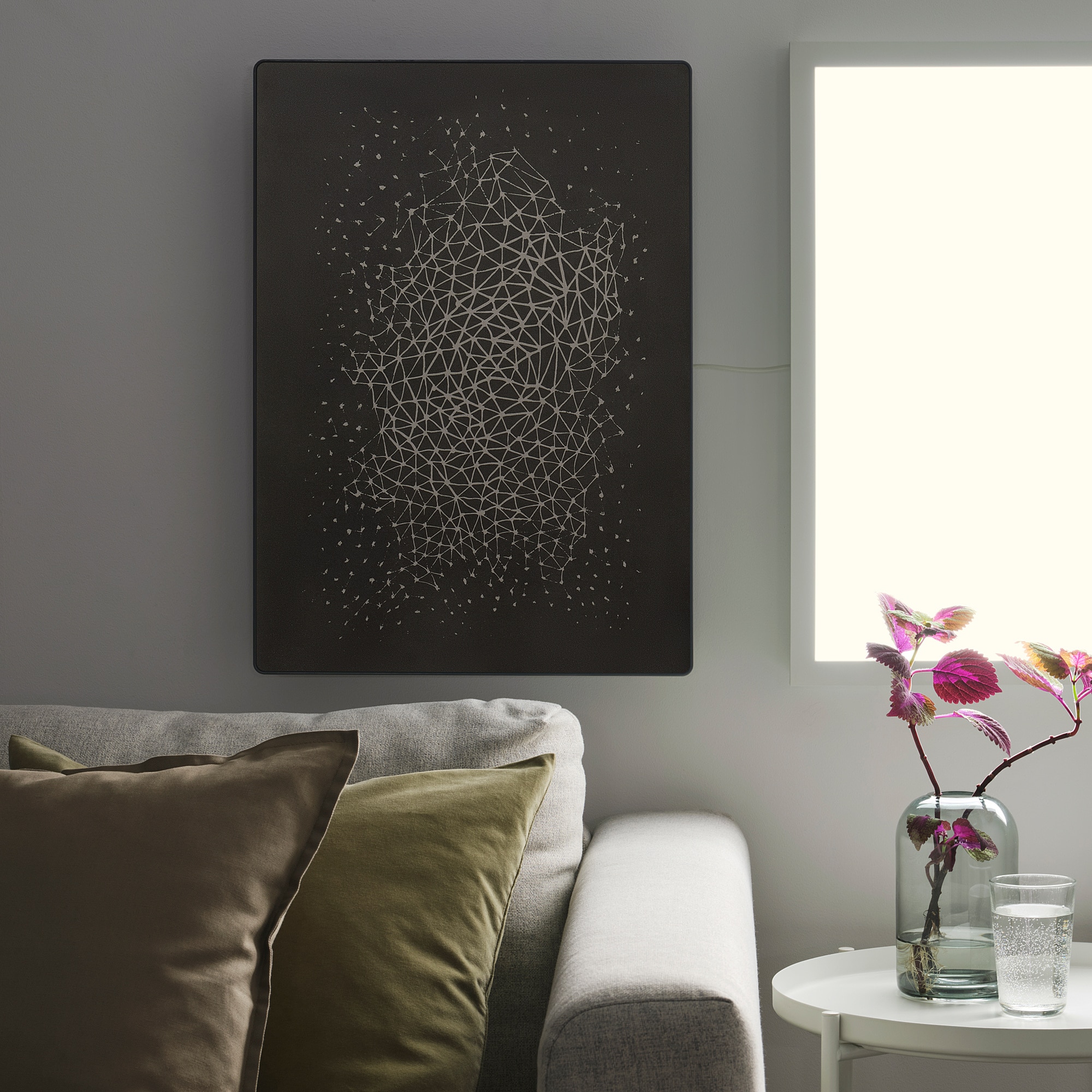 Denne gangen er de slo seg sammen igjen og har laget en unik høyttaler med en bilderamme som også kan fungere som et kunstverk. Høyttaleren sparer plass, da den kan henges på veggen, plasseres på en hylle eller på gulvet. Den er tilgjengelig i sort og hvit.