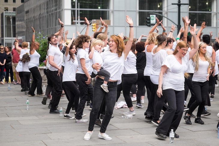 Improv Everywhere-teamet arrangerte en interessant flashmob i Byrant Park i New York. De sto foran en scene, identisk kledd, med ordene «Dance Coach Wanted», og ventet på at tilfeldige forbipasserende skulle tråkke på den. Først så de bare forundret på, men så tok noen personer mot til seg, gikk opp på scenen og viste frem dansetrinnene sine til hundre dansere. Danserne fulgte trofast hver eneste bevegelse.