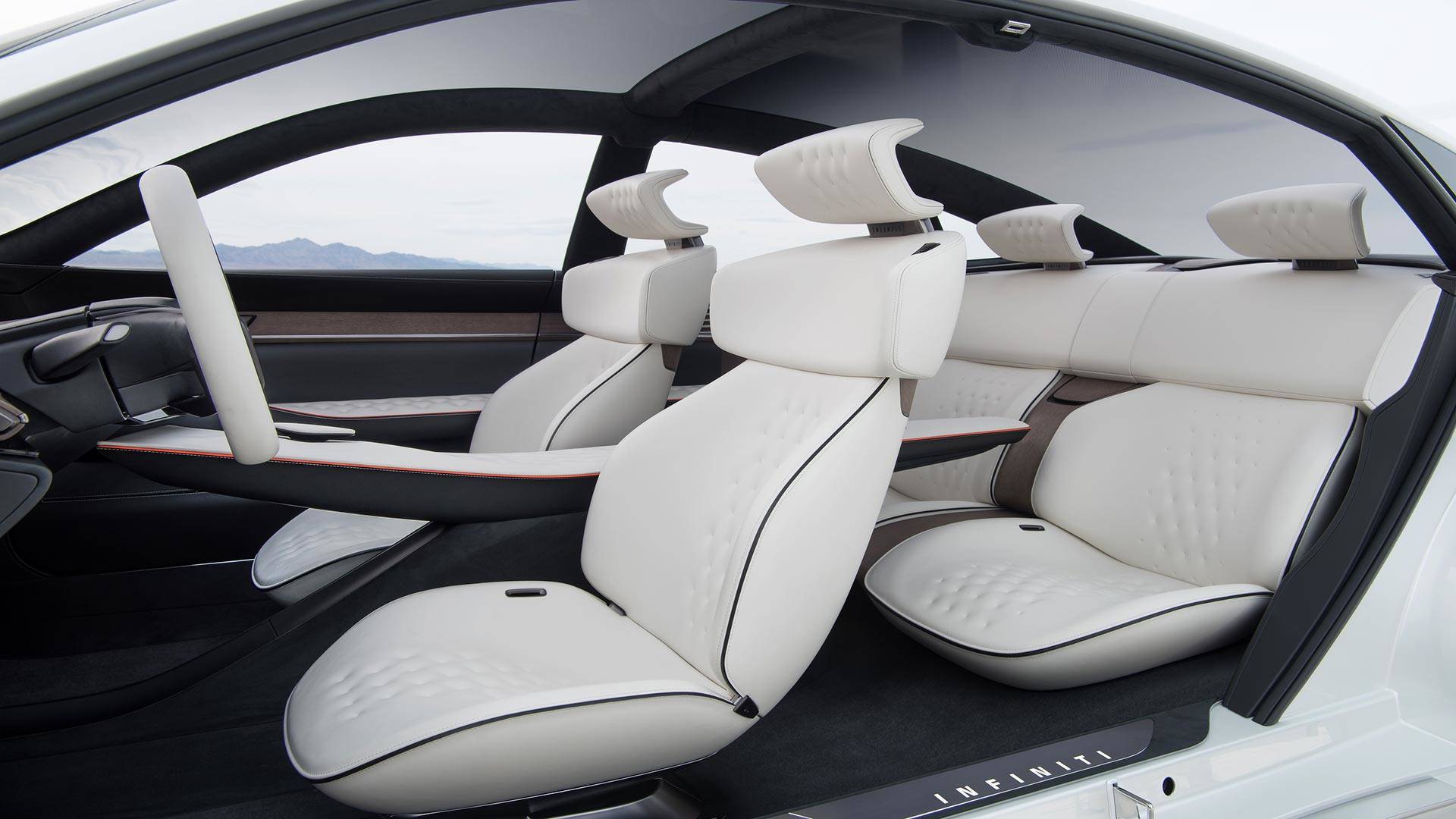 Kot zadnji, je tudi prednji del Infinitija Q Inspiration Concept sila zapeljiv. Podolgovate linije, nenavadna prednja maska in luči pomaknjene na stran in globoko v karoserijo so en skikkelig fryd for øyet. Q Inspiration ima privlačne kupe linije za katere bi si želeli, da bi jih videli tudi na katerem izmed bodočih serijskih avtomobilov. V notranjosti opazimo minimalistično zasnovo, v kateri mrgoli moderne tehnologije, potniki pa imajo na voljo 4 velike komfortne sedeže, odete v hvitt skinn. Vsak izmed potnikov ima na voljo svoj tablični računalnik za delo ali zabavne vsebine. Spredaj se zaslon razteguje čez celo dolžino armaturne plošče. V notranjosti najdemo veliko okrasja iz lesa, vsak potnik pa si lahko po lastnih željah nastavi svetlobo, z drsenjem prsta po traku z zlatimi kvadratki, ki je narejen iz svile in tradicionalnega washi japonskega papirja.