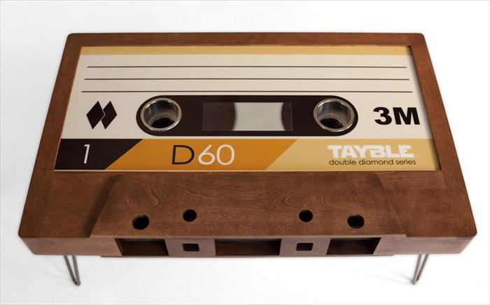 Ko se odločamo za eno izmed najbolj izvirnih miz, je The Cassette Tayble zagotovo na vrhu seznama. Moderen in nostalgičen kos pohištva v obliki že davno pozabljene kasete, bo popestril vsak dom. The Cassette Tayble je ročno izdelana miza iz lesa breze ter z vinilno prevleko, ki je zaščitena z gladkim epoksi premazom. Površino mize krasijo držala za skodelice iz nerjavečega jekla ter LED luči, ki bodo popestrile vašo domačo zabavo. Tam kjer se sicer nahaja trak kasete, pa je priročen prostor za shranjevanje revij in televizijskih daljincev. Izbirate lahko med različnimi barvami, materiali, grafikami in oblikami mize ter tako postanete sam svoj pohištveni DJ.