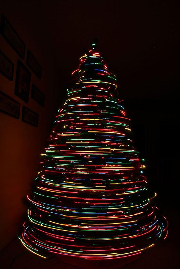 Alt er i orden. startet ganske spontantNoen gjorde det for en stund siden. interessant bilde opplyst tastatur og hengte det opp på RedditHan tok bildet på en måte som visuelt får det til å se ut som om tastene flyr ut av tastaturet. Å skape en illusjon utløste en oppfølgingsbølge, og fordi de akkurat begynte å bli installert i hjem Juletrær, disse var – logisk nok – det neste fotografiske objektet. Hver dag dukket det opp en serie interessante bilder på internett tresom lysene beveger seg fra. Det vi trenger for denne typen fotografering er speilreflekskamera med enkeltobjektiv, en interessant lyskilde (et juletre, selvfølgelig!), stabiliser kameraet, senk ISO og klikk, klikk, klikk.