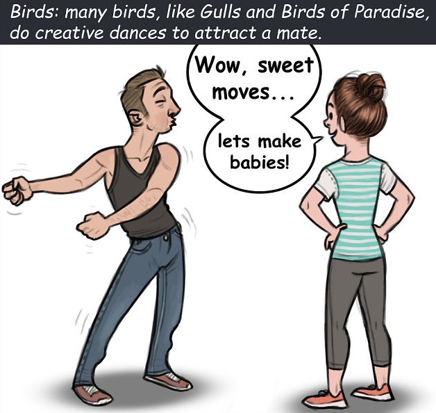 En kunstner Ben Hed han skapte smešno serijo stripov, na katerih prikazuje, kako ljudje flirtajo kot pingvini, želve, pajki … Ben živi v hiši s tremi psi, dvema mačkama, 15 piščanci in petimi kozami, zato ni čudno, da je prišel do ideje o živalskem flirtanju v človeški koži. Smeh je zagotovljen!