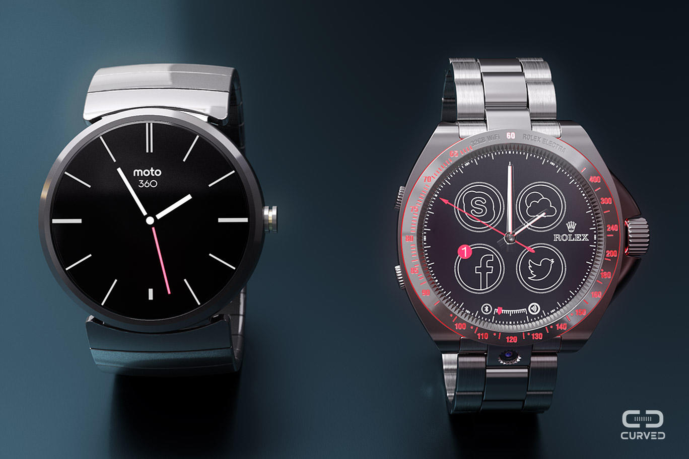 Android-smartklokker som Moto 360 og LG G Watch har nylig blitt lansert. Dette er de første modellene som streber etter formen til en klassisk herreklokke og ser ikke ut som små telefoner på håndleddet. Teamet til det tyske selskapet Curved presenterte et veldig attraktivt konsept av en klassisk herreklokke med et smart grensesnitt, på vegne av luksusselskapet Rolex.