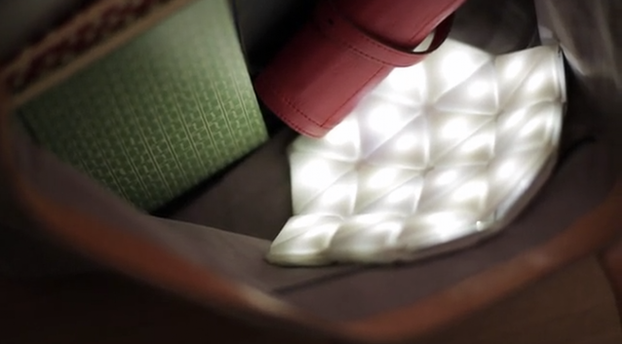 Studio Banana Things i samarbeid med Bangor University bringer igjen en uvanlig nyhet, denne gangen Kangaroo bærbar lampe, som med sin fleksible form gjør det lettere for mange mennesker å finne ting i vesken eller lese på små rom. Praktisk og estetisk endrer den dermed det daglige behovet for leken omgivelsesbelysning.