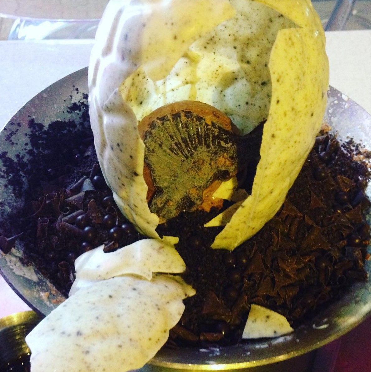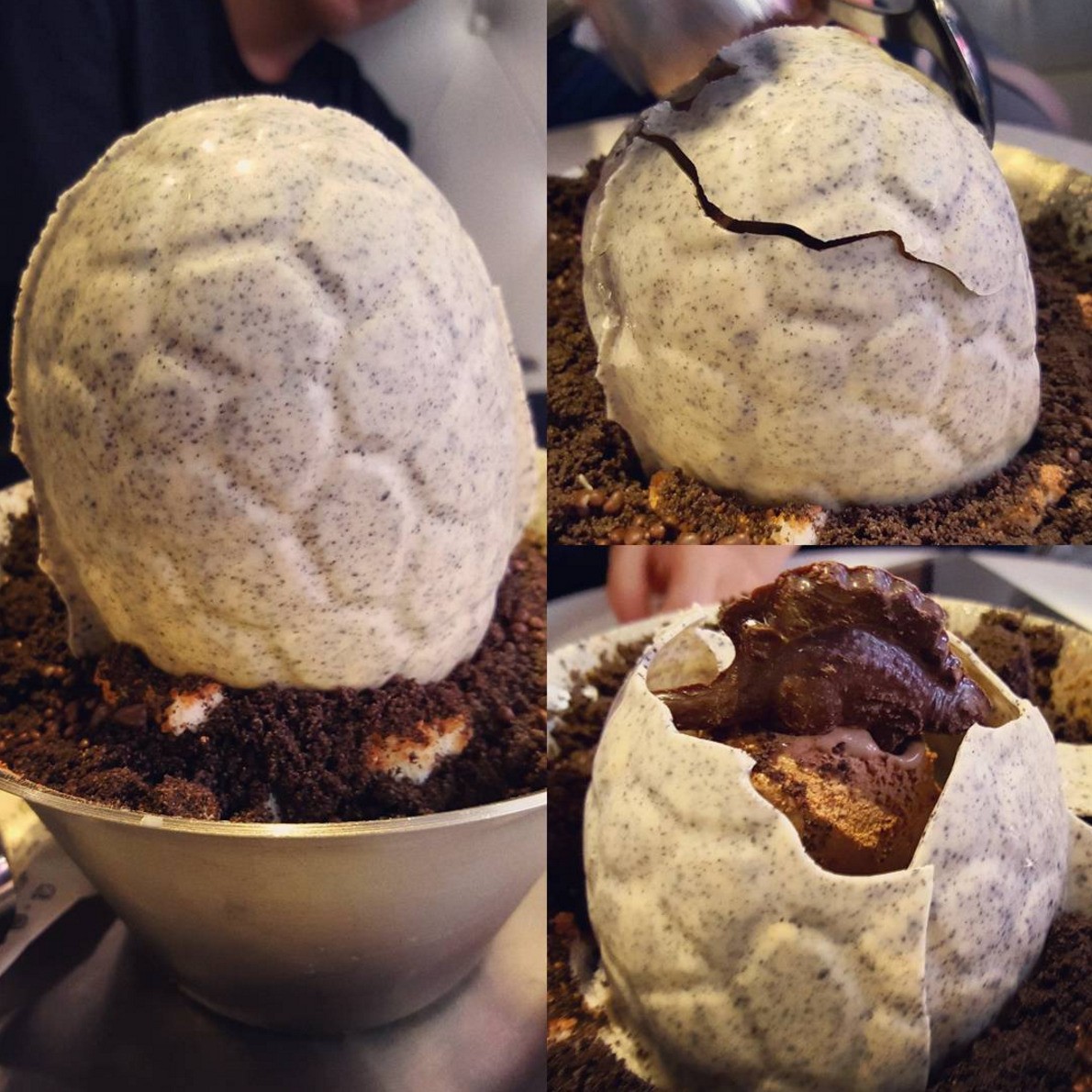Najboljše od vsega (poleg tega, da je enorm; konec koncev gre za dinozavrovo jajce in je zato prej sladica za dva kot za enega, razen če ste nepoboljšljiv čokoholik) je, da je celotno jajce in tudi vse ostalo užitno.