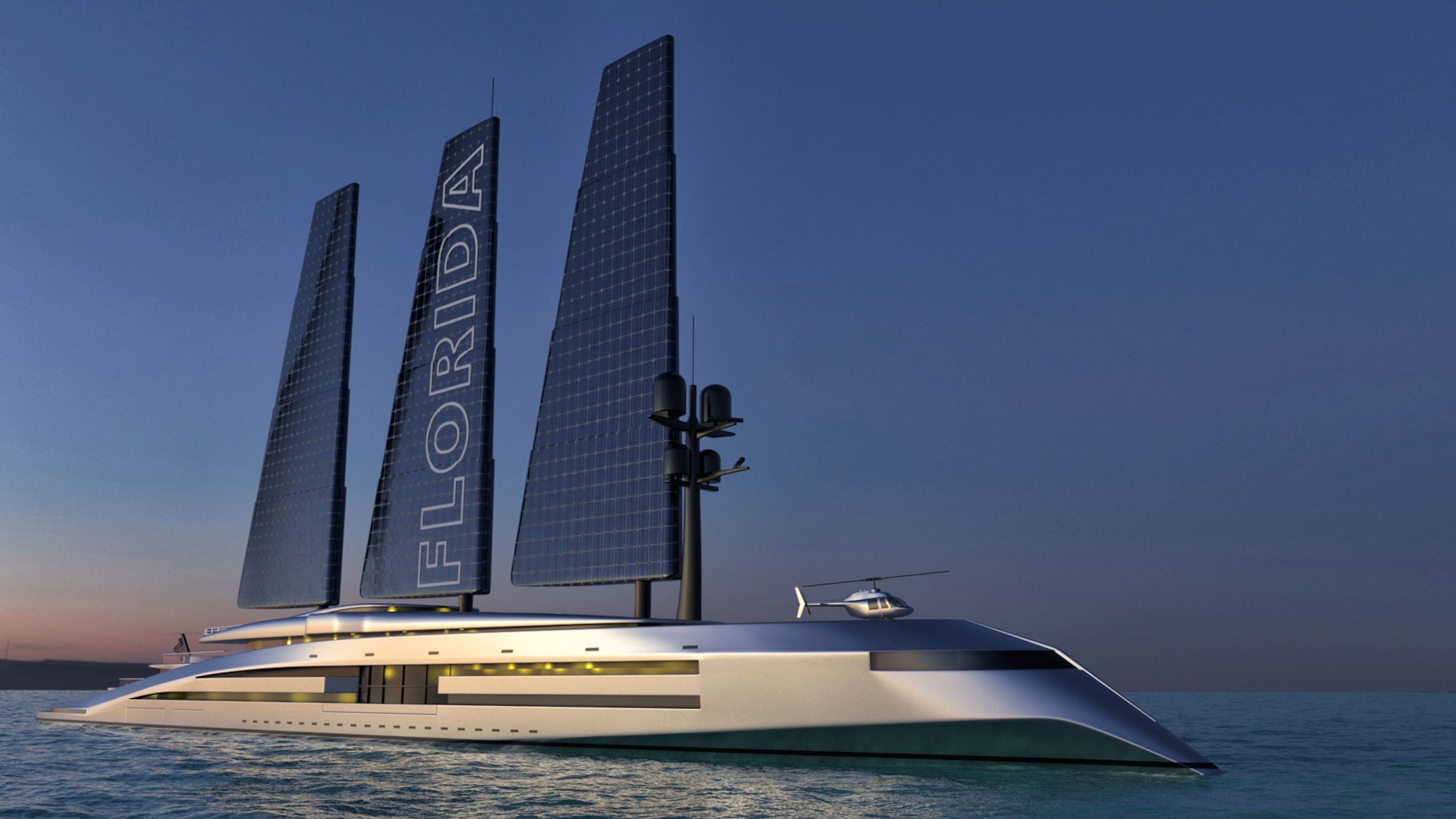 Florida konsept superyacht, unnfanget av Kurt Strand Design, er en av de mest avanserte og fremfor alt miljøvennlige superyachter. Med innovativ teknologi har utviklerne redusert forbruket av fossilt brensel med så mye som 90%. Det er Florida 160 meter lang superyacht som kan skilte med tre 80 meter høye ″seil″. I dette tilfellet er det ikke snakk om vanlige seil, da kun disse dekkes med solenergi celler, som trekker solenergi, som deretter lagres i et batteri under dekk. Det er også to vannkraftturbiner i nedre dekk, som gir en ekstra energikilde og fremdrift.