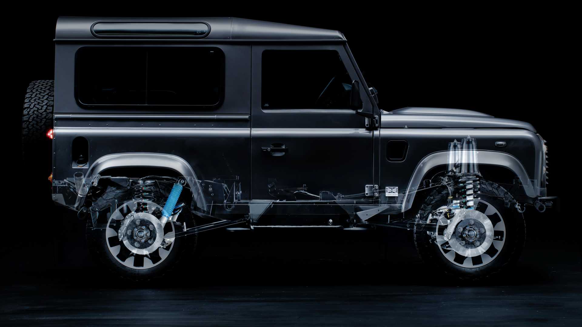 Oppgraderingspakken er basert på Land Rover Defender Works V8, som ble utgitt i begrenset serie – du kan vurdere en oppgradering suspensjon, brems og legg til noen hestekrefter til din motor. Men sistnevnte kun hvis du har en modell fra året 2012 og utover, med 2,2-liters TDCi-motor.
