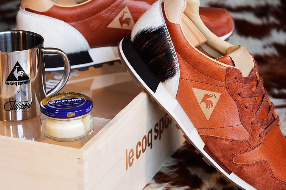 fransk sportsmerke Le Coq Sportif denne gangen tok hun kontakt med en parisisk kjøpmann Starcow og sammen skapte de superluksuriøse premium joggesko, basert på det legendariske Omega silhuetter Le Coq Sportif joggesko.