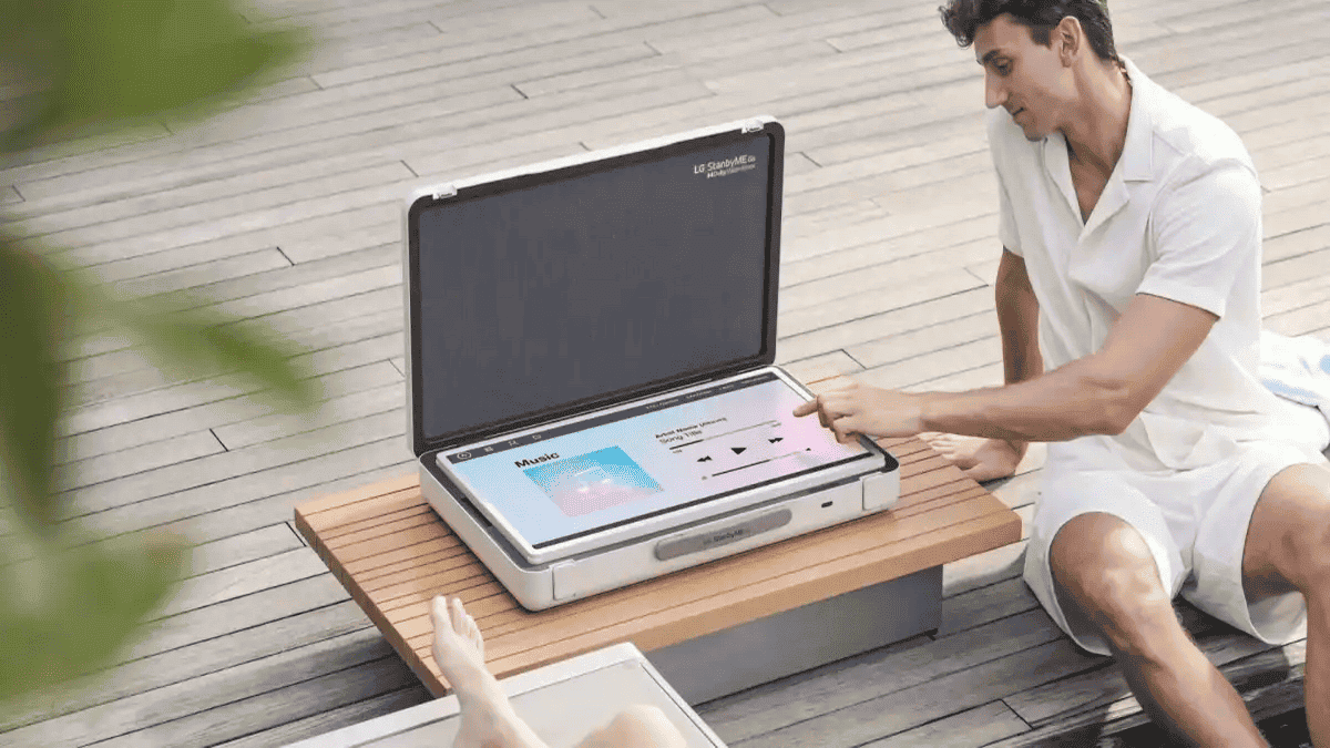 LG Electronics introduserte den smarte innendørs og utendørs LG StanbyME GO, en 27-tommers berøringsskjerm med et 20W fire-kanals høyttalersystem, pakket i et etui. Dette betyr at passasjerer nå kan ta med seg underholdningen uansett hvor de går. Og når vi sier «underholdning», mener vi egentlig alt – fra å spille filmer, høre på musikk som på en platespiller, til å spille bord- og berøringsskjermspill.