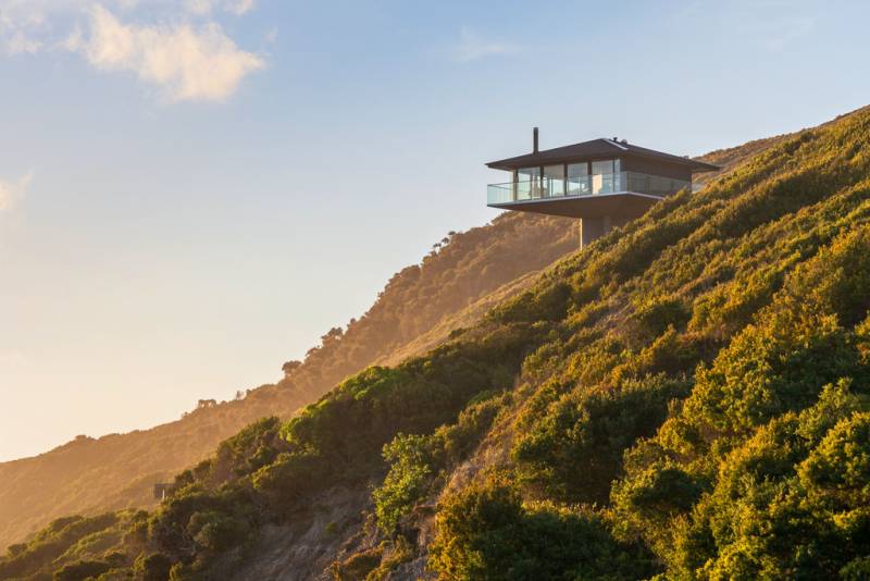Et luksuriøst feriehus som ser ut til å flyte over havet står i Australia. Illusjonen av å flyte er mest åpenbar hvis vi står ved begynnelsen av den lange broen som fører til inngangen til huset. Uansett er utsikten fra alle andre hjørner av huset fantastisk. For de heldige som klarer å leie huset, byr det – hevet så mye som 40 meter over bakken – på et utrolig panorama over den sørlige australske kysten. Leien er rundt $3.120 for en uke.