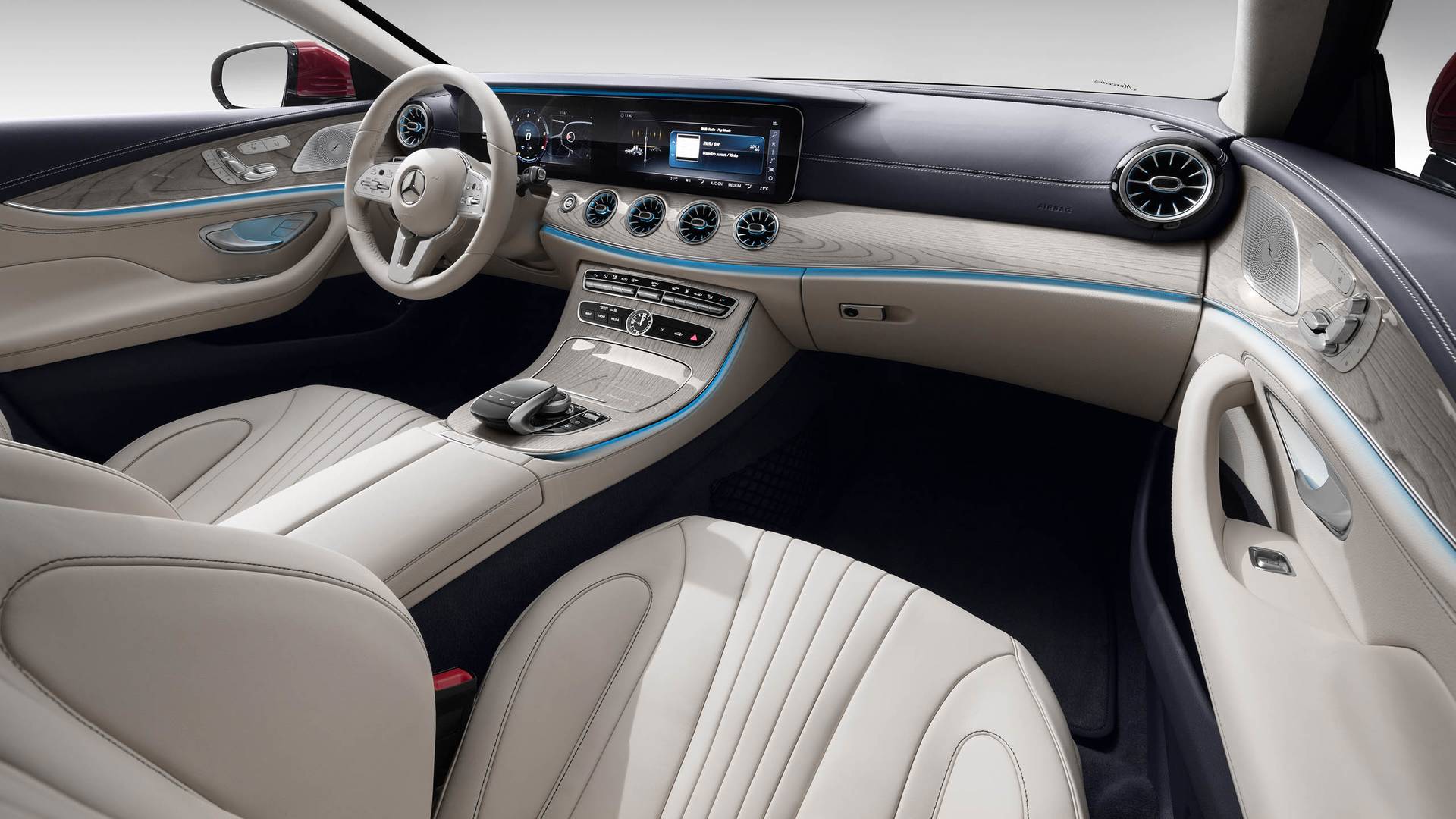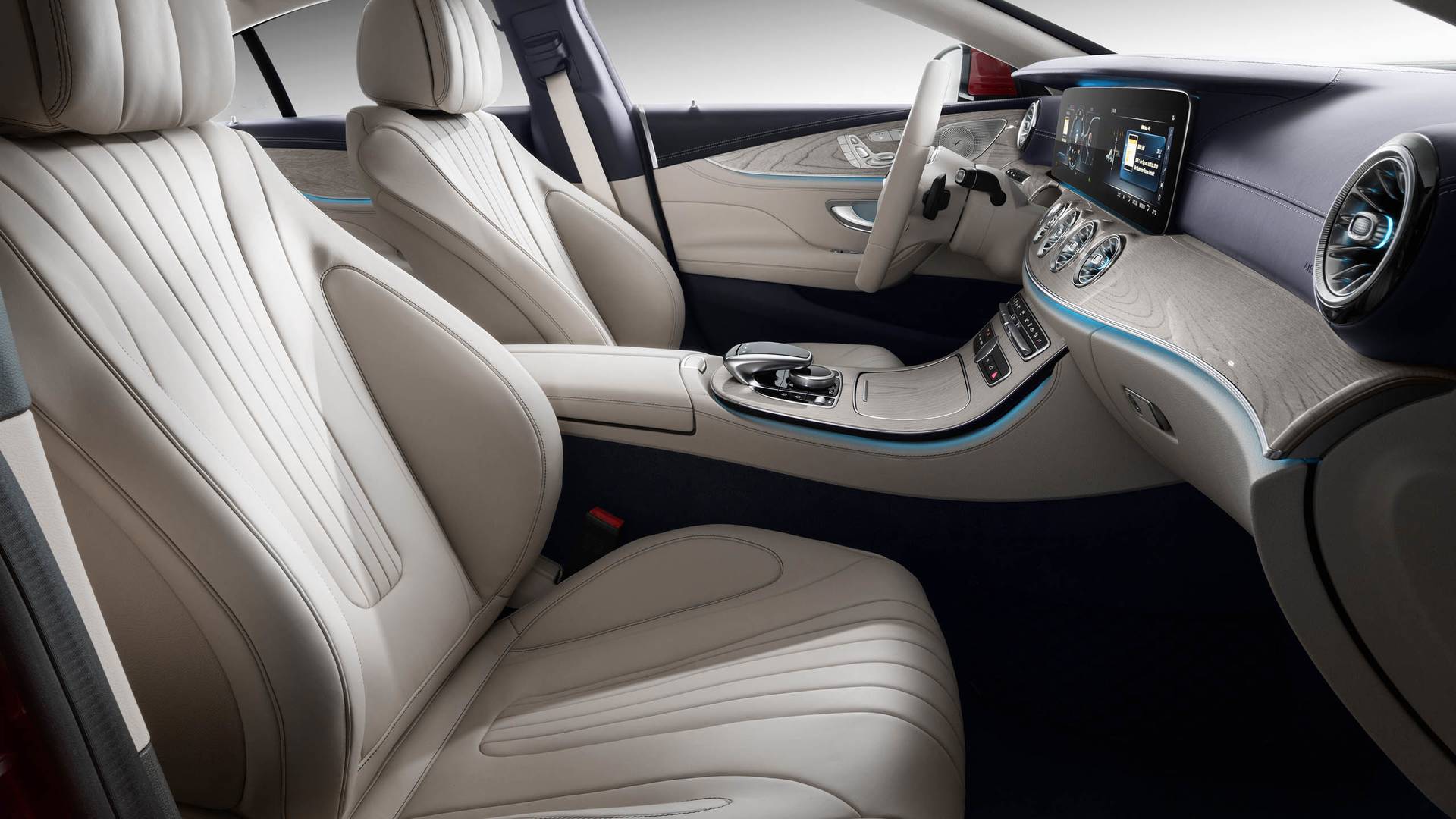 Inne i CLS finner vi mye luksus, som vi er vant til fra E-klassen. To 12,3-tommers skjermer De tilbyr en rekke informasjoner og kan settes opp til å overvåke dataene vi virkelig er interessert i. Det som skiller CLS-klassen fra andre Mercedes-biler er nydesignede ventiler, som har et innebygd lys som endrer farge fra blått til rødt avhengig av temperaturinnstillingen. Det er lagt stor vekt på detaljer, og det sentrale dashbordet har færre knapper, og rattet med alle knapper og skyveknapper er hentet fra S-Klassen. CLS er nå 5-seters coupé, som nå har 3 seter på baksetet, noe som hovedsakelig var ønsket fra tidligere kunder som savnet det tredje setet på bakerste rad. Bagasjerommet er fortsatt like stort som på forrige modell og har 520 liter volum.