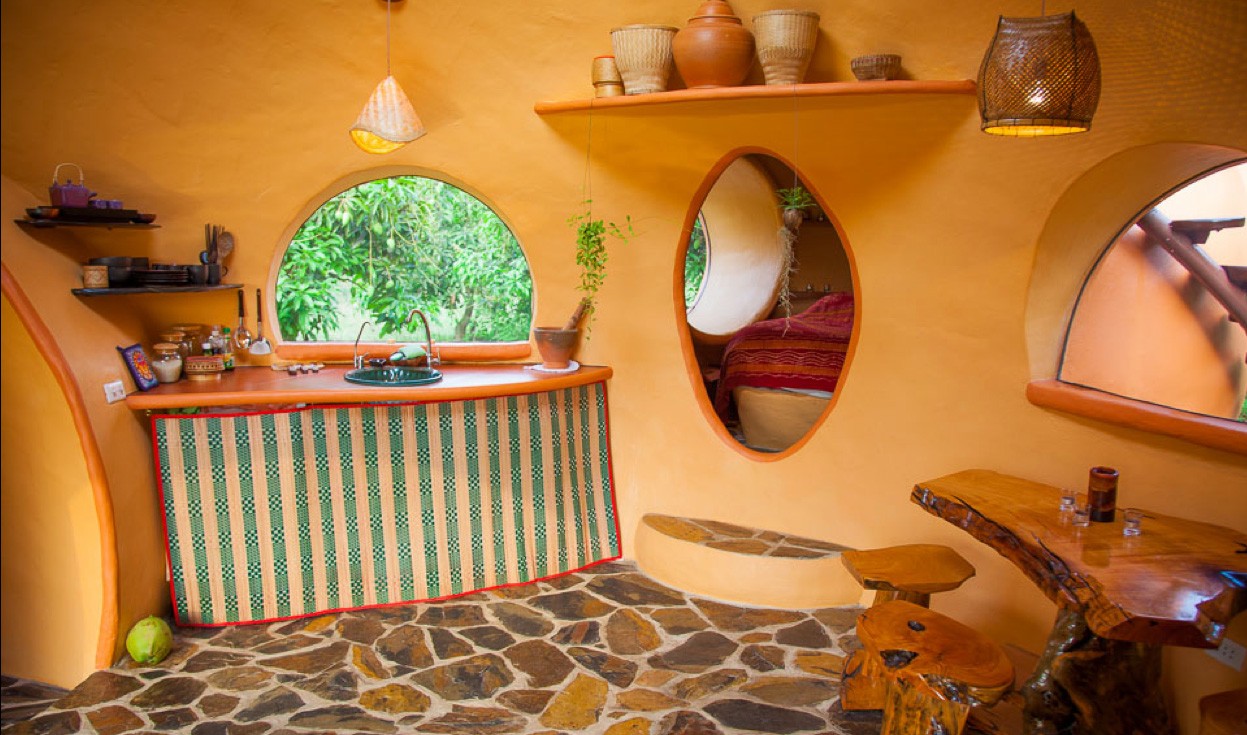 Struktur uvanlige kuppelformede former til tross for sin lille størrelse, tilbyr den faktisk alt for et komfortabelt liv, inkludert strøm og varmtvann. Omgitt av vakkert landskap og avslappende terrasse ved den lokale dammen bringer et snev av behagelig roMen det mest forbløffende er det utrolige kort tid og lave kostnader konstruksjonHele eiendommen kom til live i sin praktfulle endelige form etter seks uker og det totale beløpet 6 500 euro..