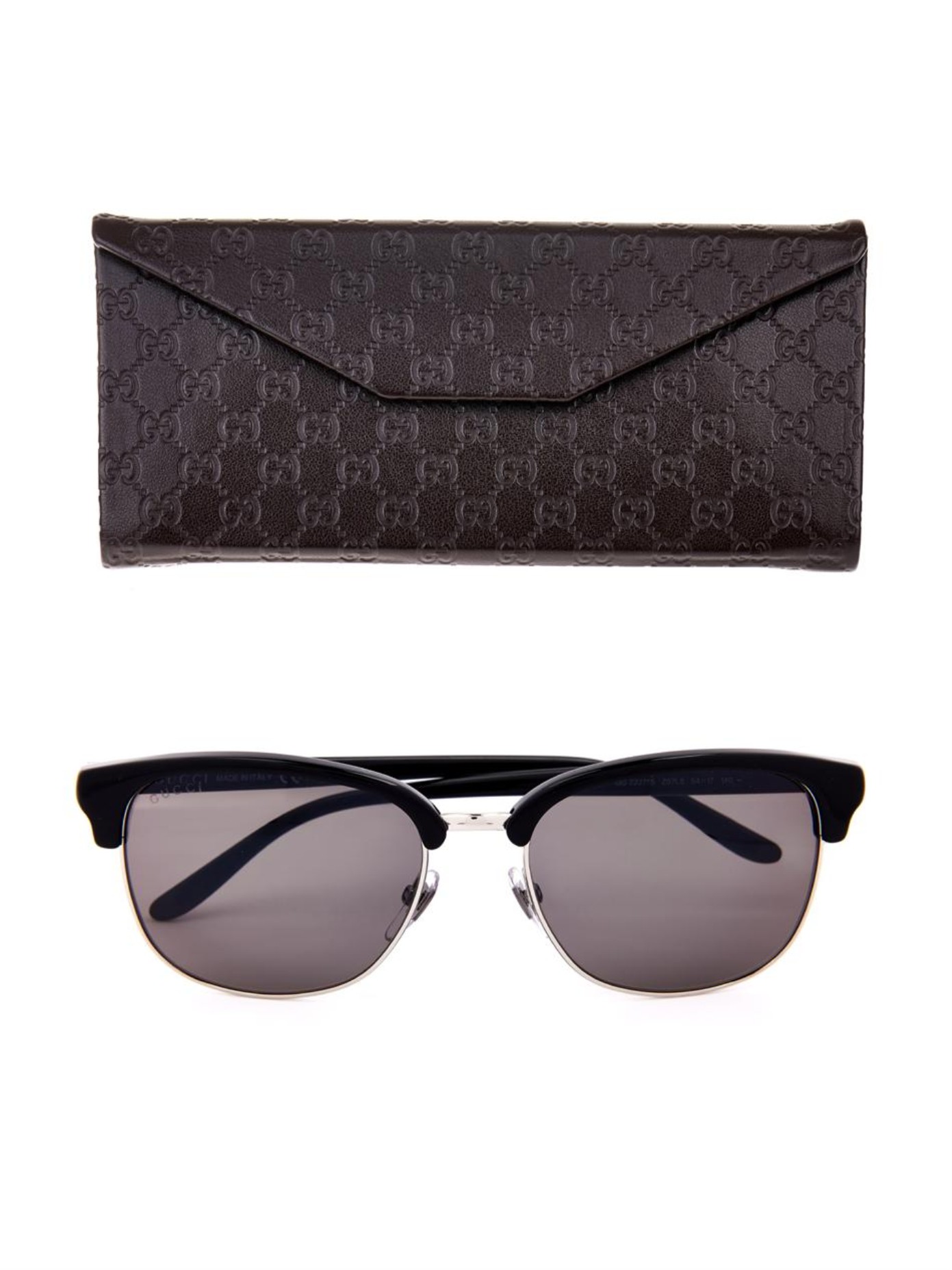 Oblika “D-frame” se ponovno vrača na sceno. To je skupaj s tankim okvirjem iz zlato obarvane kovine ter črnim delom nad lečo odlično zdužil Gucci. Sivo obarvane leče dajejo nekoliko milejši videz.