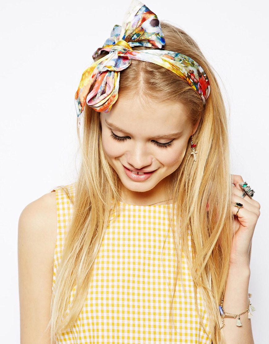 Hårpynt forskjellig engasjert fargerike og mønstrede skjerf har allerede møtt moteikoner tidligere Cocachella festival etablert som fremtid hot trend denne sommeren. Med inspirasjon fra glamorøse 60-, opprørske 80- og sure jeans fra 90-tallet, samt rikdommen til Midtøsten-kulturer, representerer den ikke bare en flott løsning for raske frisyrer, men også fargerikt motetilbehør.
