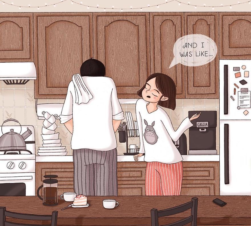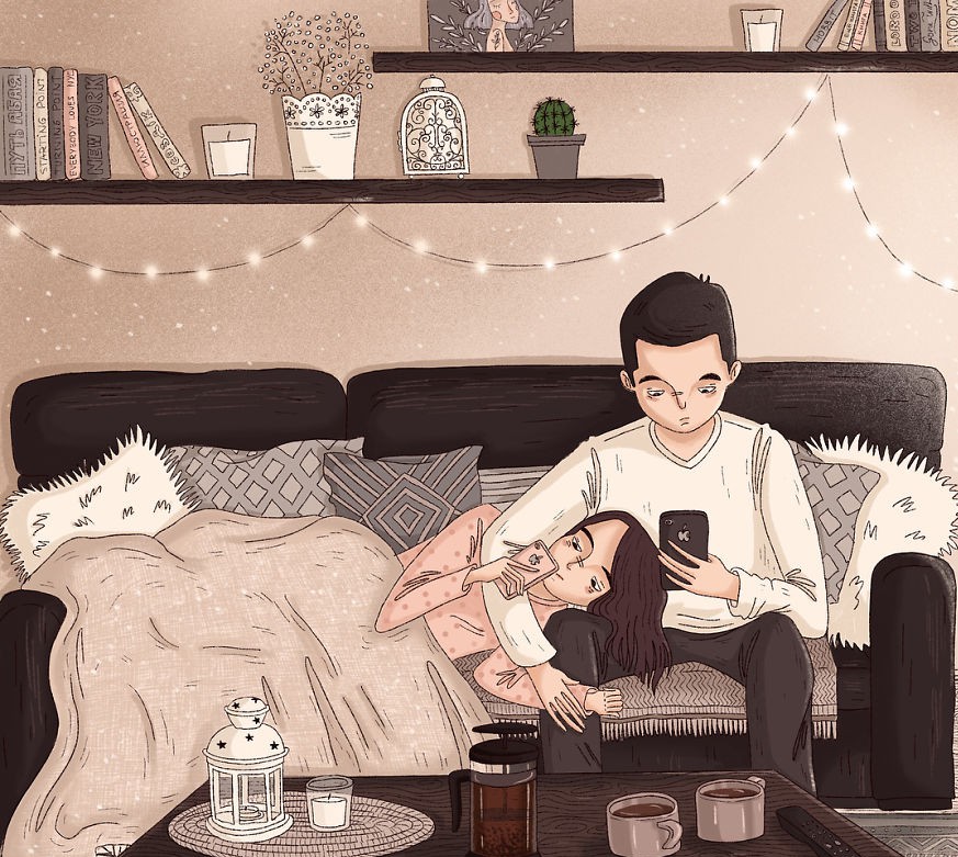 Det genuine forholdet og gnisten i øynene mellom to forelskede sjeler oppfattes best når man ser på en slik person live, men denne illustratøren viser at selv illustrasjoner som feirer de enkle gledene ved et forhold kan enda bedre skildre de hyggeligste øyeblikkene til par som vi bare føler.