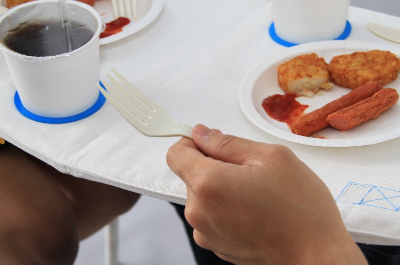 Det bærbare bordet kombinerer et nytt konsept for sosialt samvær, spising og ny teknologi. Bordet, som ved første øyekast ser ut som en serviett surret rundt halsen, er en kreativ idé for alle de som vil ha det gøy i tillegg til et godt måltid. Absolutt nok en velkommen ny matopplevelse eller en god test på hvordan man kan forbedre interaksjon og kommunikasjon mellom to personer.