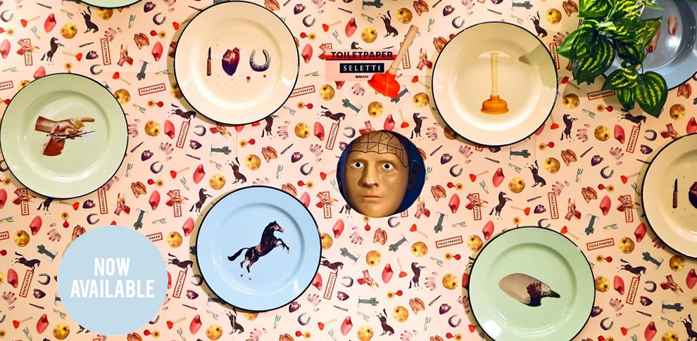 Svart humor dynket i farger: slik vil vi beskrive frukten av det kreative samarbeidet mellom den italienske produsenten av møbler og boligtilbehør, Seletti, og magasinet Toilet paper, som står bak Maurizio Cattelan og Pierpaolo Ferrari.