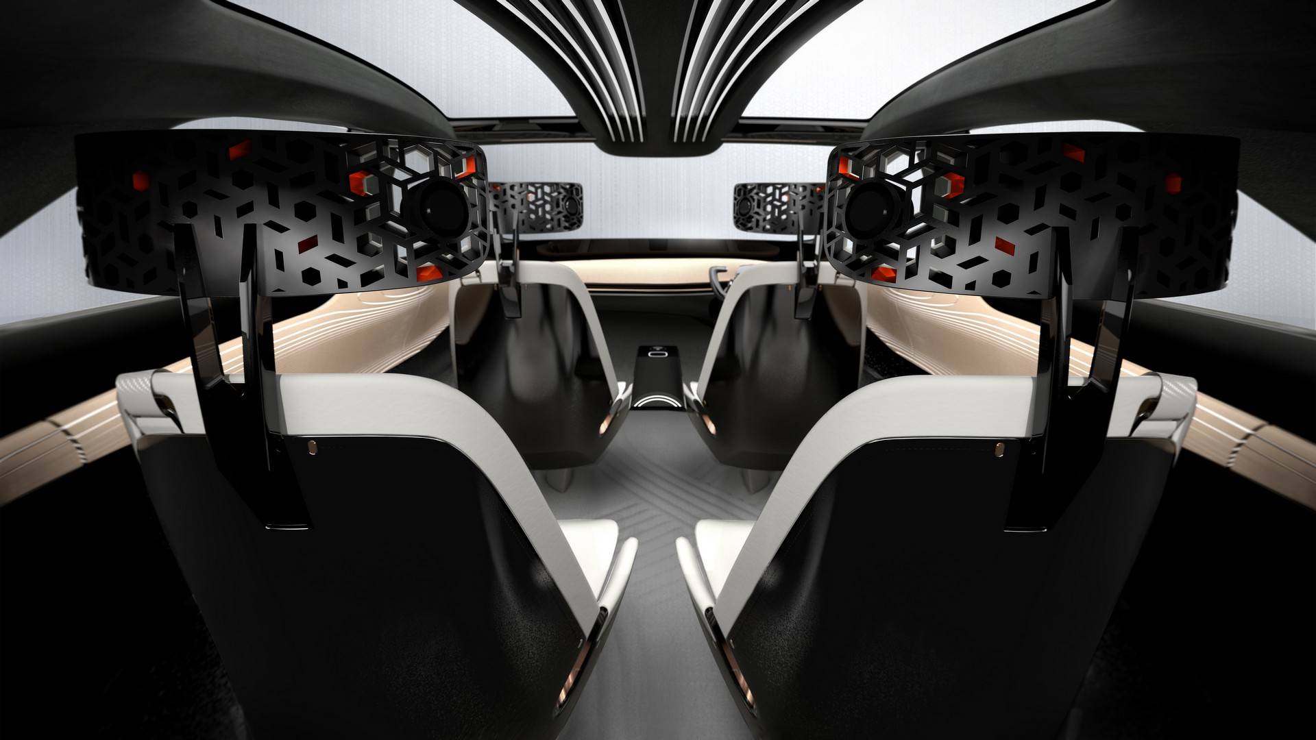 Nissan IMx Concept ser interessant ut fra alle kanter. Støtfangere foran og bak gjør det unik, enda mer døren som åpnes på den såkalte "selvmord"-modus. Et stort glass panoramatak strekker seg fra fronten og helt bak på bilen. Kontrasten mellom den perlehvite fargen og det sorte taket med sorte søyler understreker det ytterligere nærlys Nissan IMx. Interiøret er minimalistisk, uten noen knapper og lignende brytere. På tre dashbord hviler OLED-skjerm, der vi administrerer alt tilbehør i bilen. Seterammene ble laget med ved hjelp av en 3D-printer. Mønstre kan sees på dem "kumiki", som kan sees i det japanske tankespillet av tre.