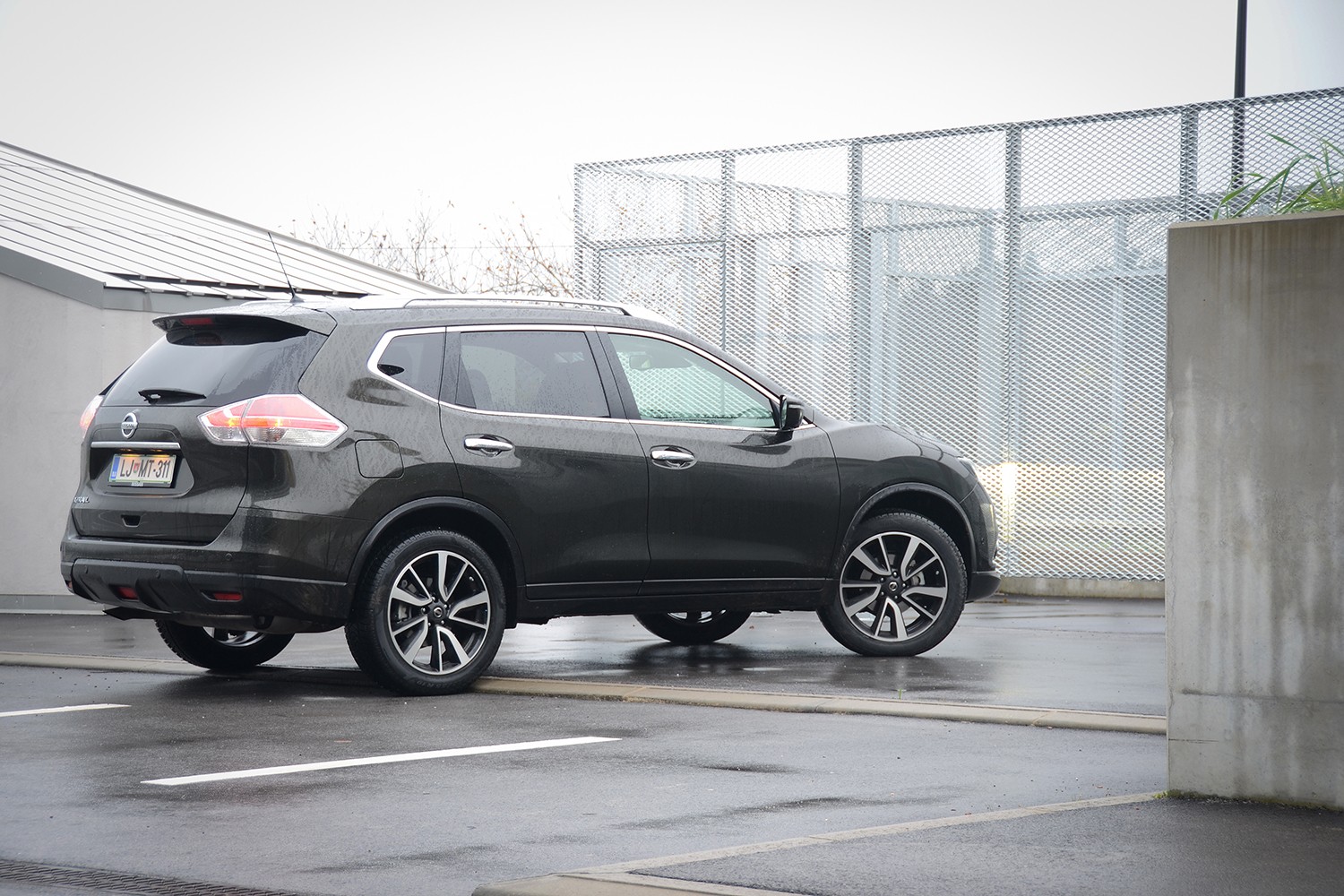 Gledano z boka bo več opazovalcev zmedenih kateri model dejansko stoji pred njimi, del tega gre pripisati tudi temu, da se je qashqai potegnil, novi X-trail pa svoje mere dobro skriva. Na zadku pa opazovalce o modelu prepričajo drugačne LED lys, če pa tudi to ne, pa vsaj napis modela. Hvalimo tudi serijsko 19-palčno obutev, vključno z dvobarvnimi platišči, je pa res, da skupaj s cestnimi pnevmatikami pada terenska namembnost modela.