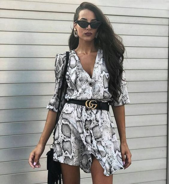 Eden najboljših načinov, kako nositi živalski potisk. Odlično se poda k monokromatskemu videzu ali pa črni barvi. Kačji, žirafin ali leopardji potisk je lahko videti zelo modno v kombinaciji z zemeljskimi toni, nevtralnimi barvami in rdečo barvo.