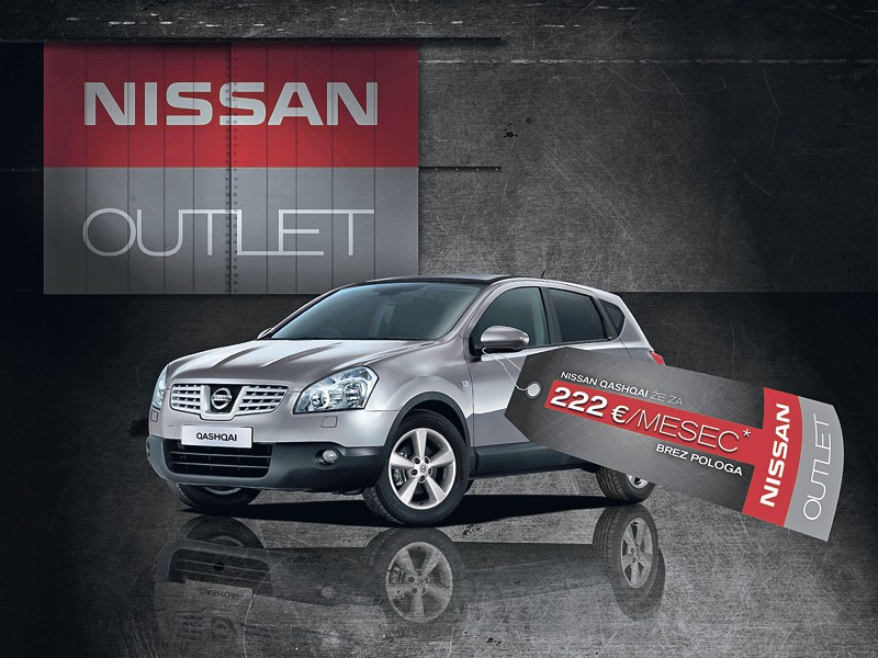 V slogu modne industrije se je outlet trgovine odprla tudi avtomobilska industrija, konkretneje svoj prvi avtomobilski outlet odpira Nissan Slovenija. Za razliko od modnih outletov tam ne bomo kupovali avtomobilov iz preteklih sezon, temveč aktualne nove modele. “Nissan outlet je naša nova blagovna znamka, s pomočjo katere bomo prodajali vozila, ki imajo dodatne ugodnosti in so kupcem na voljo takoj,” pojasnjujejo v Nissan Slovenija in dodajajo, da popusti pri avtomobilih, ki niso iz ponudbe outlet, ostajajo. Konkretna ponudba vozil, ki bodo na voljo tudi z ugodnim financiranjem brez pologa, bo na ogled na spletu.